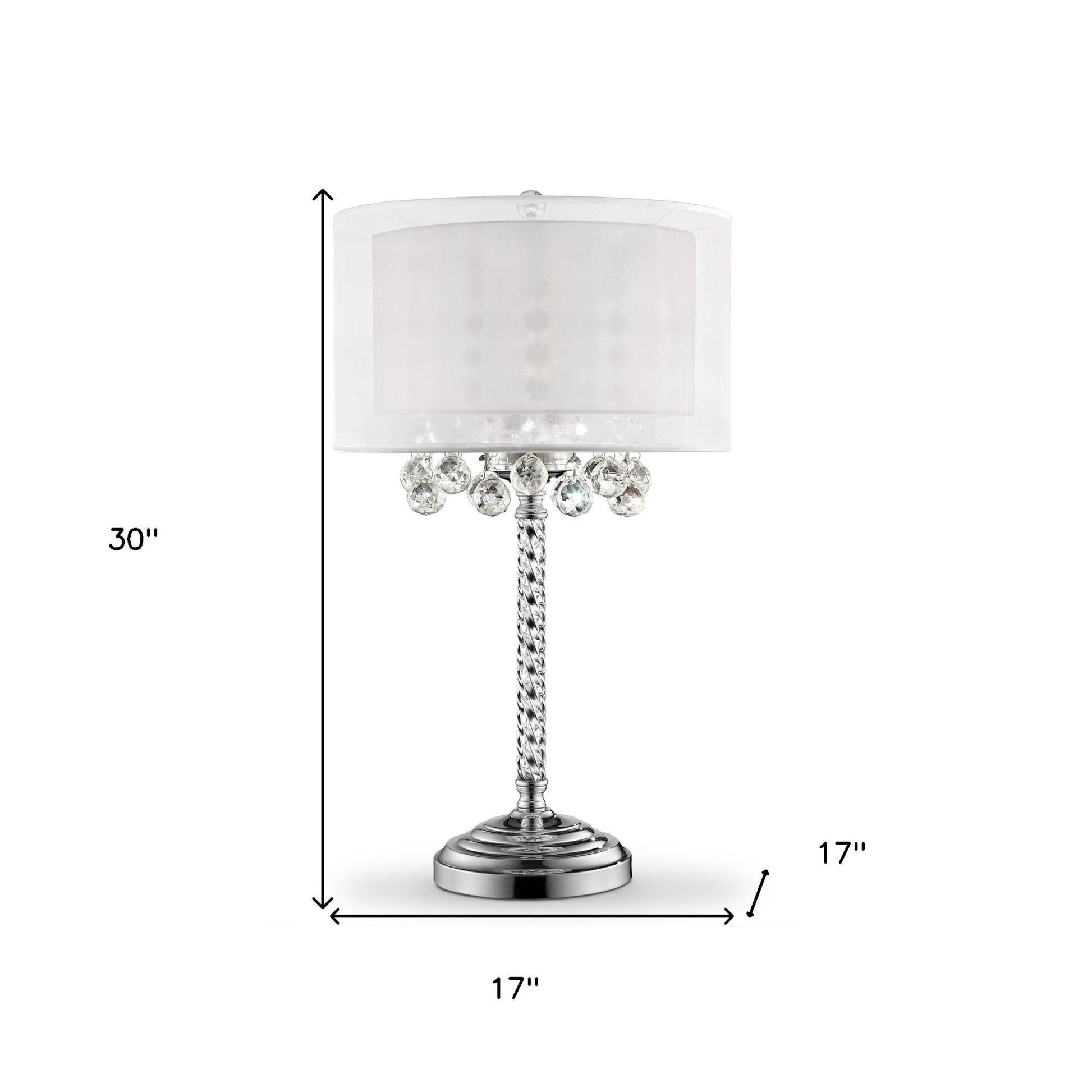 Chic Silver Tall Table Lamp with Crystal Accents and Silver Shade