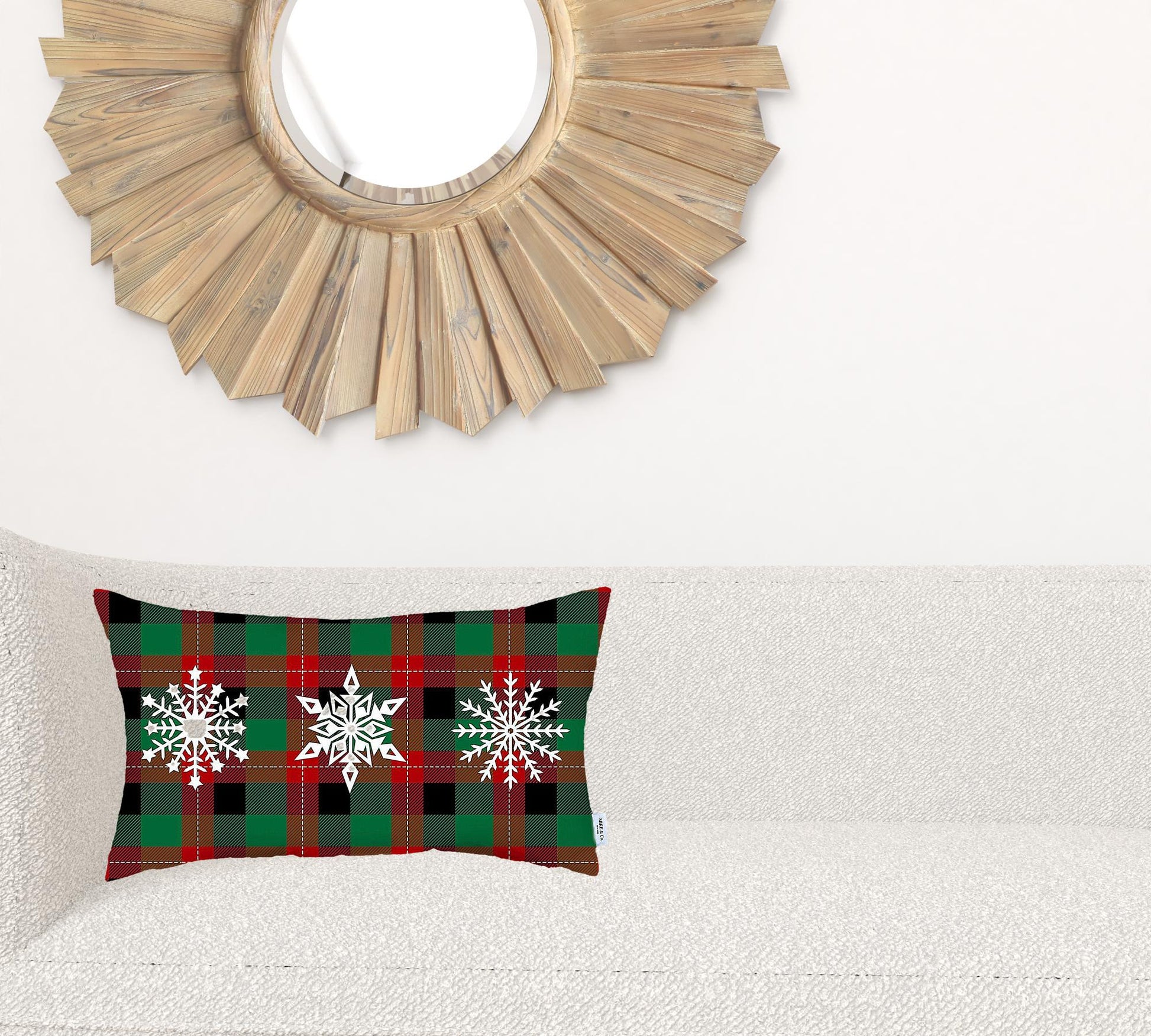 Christmas Snowflake Trio Plaid Lumbar Throw Pillow