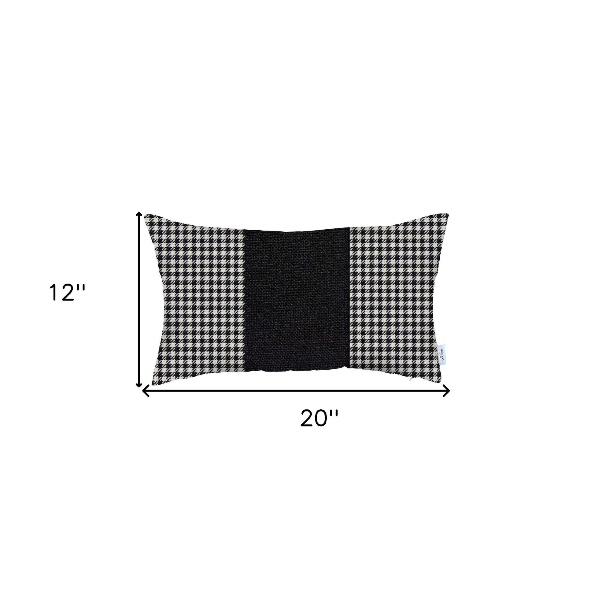 Flaunting a timeless pattern in a sophisticated color palette, this Classic Black Houndstooth Lumbar Throw Pillow will make your modern home feel welcoming and elegant. The black and white jacquard weaved houndstooth pattern with a matte black vertical center strip adds a stylish appeal to the piece. Skilled Turkish craftsmanship combined with OEKO-TEX Standard 100 certified polyester fabric ensures product safety and durability. To make sure this pillow stays beautiful, it only needs to be spot cleaned. Keeping the whole look seamless and uniform, the zipper is kept out of sight in its hidden closure with a soft poly filling inside. Pair this classy decorative throw pillow with a bold or neutral color scheme and it will effortlessly blend in without overpowering its surrounding. 12” x 20” x 1”