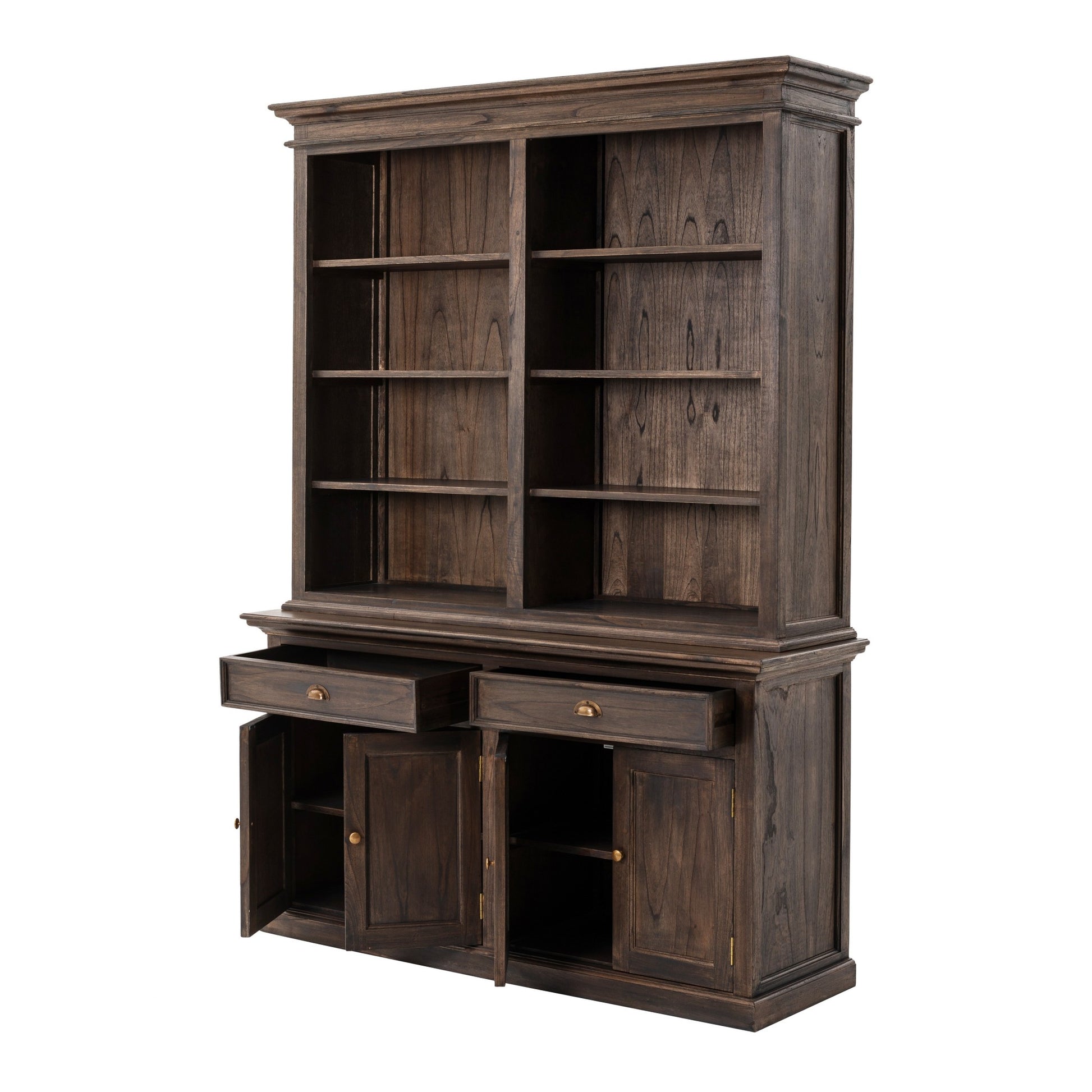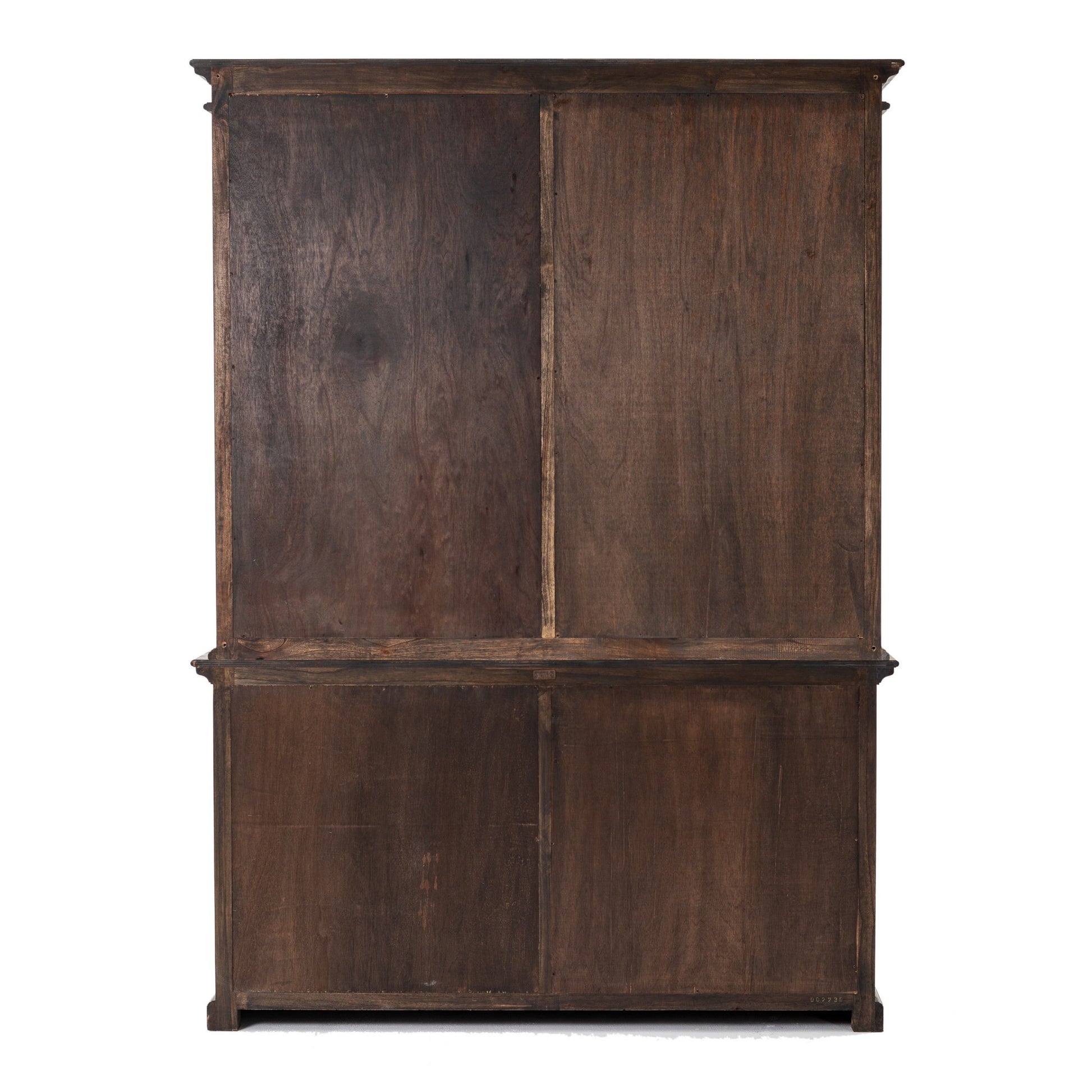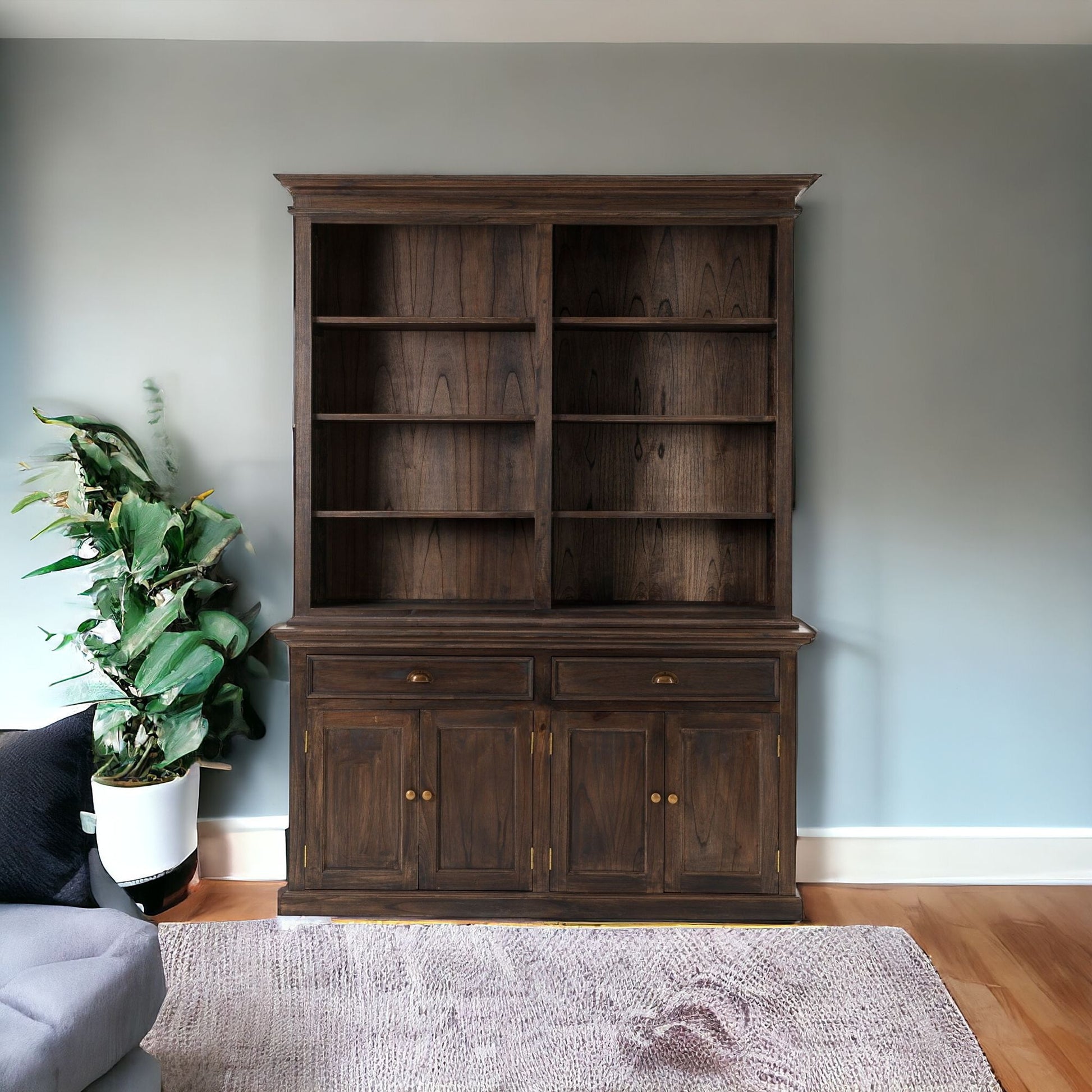 Enhance the vintage aspect of your home with this magnificent Classic Black Wash Display Hutch Unit. Ideal of you living room or bedroom the massive storage unit provides adequate space to accommodate books, linens or any kind of personal belongings. The unit comprises of two components, the upper level has multiple fixed shelving crafted entirely from mindi wood. The lower unit has a combination of drawers and deep shelves which are perfect for your books and collectables. The entire unit is bathed in a black wash glaze and serves as an exclusive backdrop to any decor. 86.61 x 62.99" x 19.69"