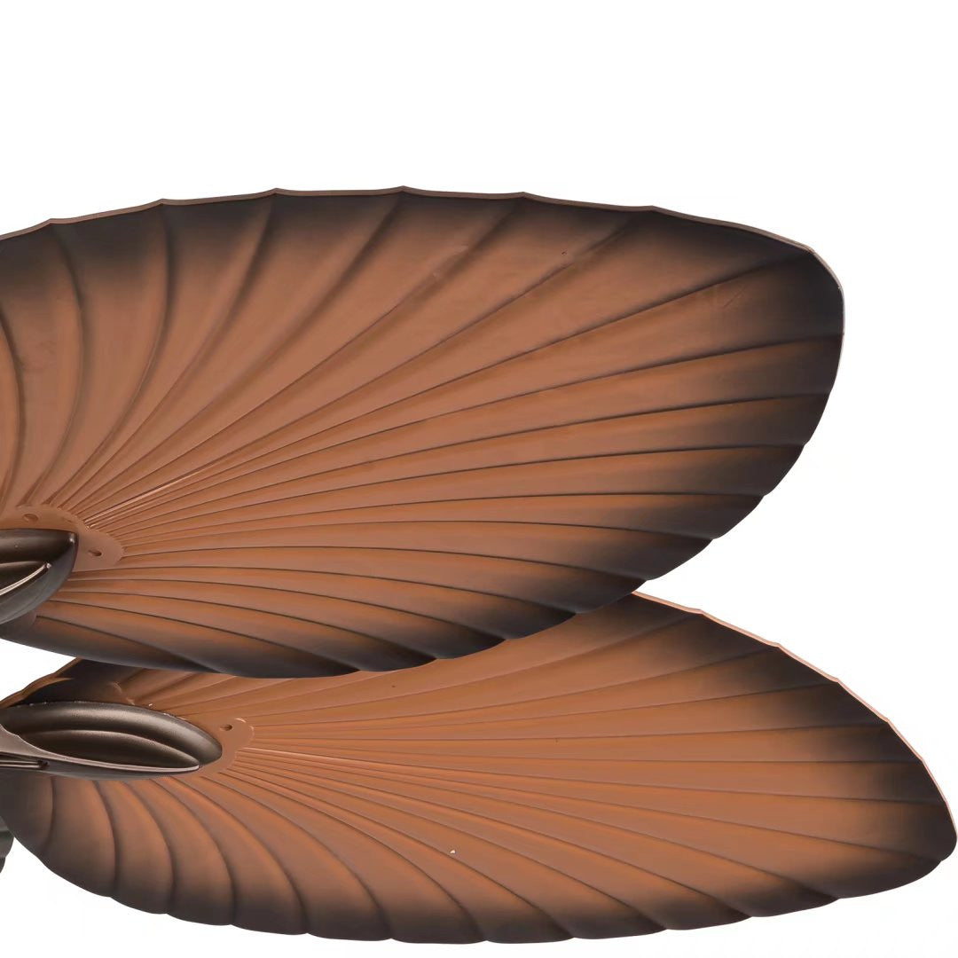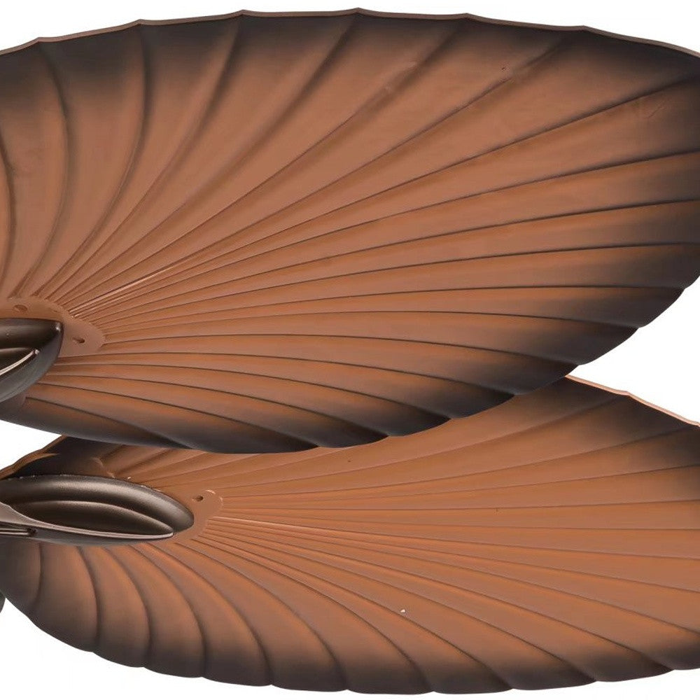 With its tropical island palm design, this Classy Metal Ceiling Fan And LED Lamp is the perfect light and fan fixture for your home. Made of high quality metal and acrylic and colored into an oil brushed bronze, this fixture is the ideal piece for any room in your home, cafe, or restaurant. The lamp uses a LED light source that offers three light color option, white, warm, and neutral light. The fan blades have a tropical palm design and has three speed settings which you can control through the attached remote. 9.8” x 52” x 52”