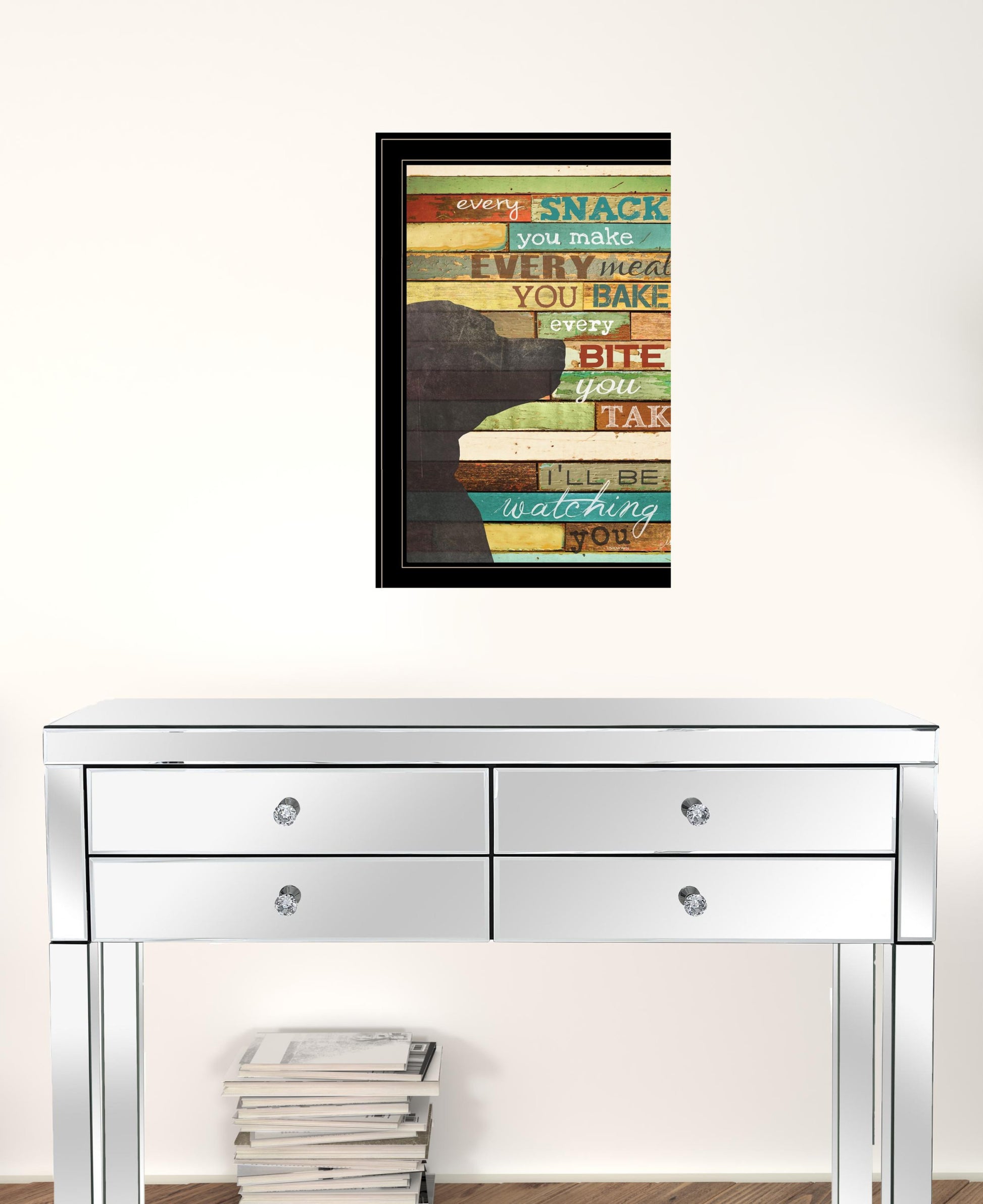 The colorful dog watching you snack black framed print wall art is the perfect decorative accessory for your home. This print is a visual artistic expression that allows you to decorate your space in style. Reproduced for you on paper, this hanging decorative accent will be a trendy and fashionable way to dress your walls. Hang on your wall to add some up to date fashion and decoration. Utilize this opportunity to create a focal point in the room with this fabulous wall decor option. 23 inches H x 19 inches W x 1 inches D
