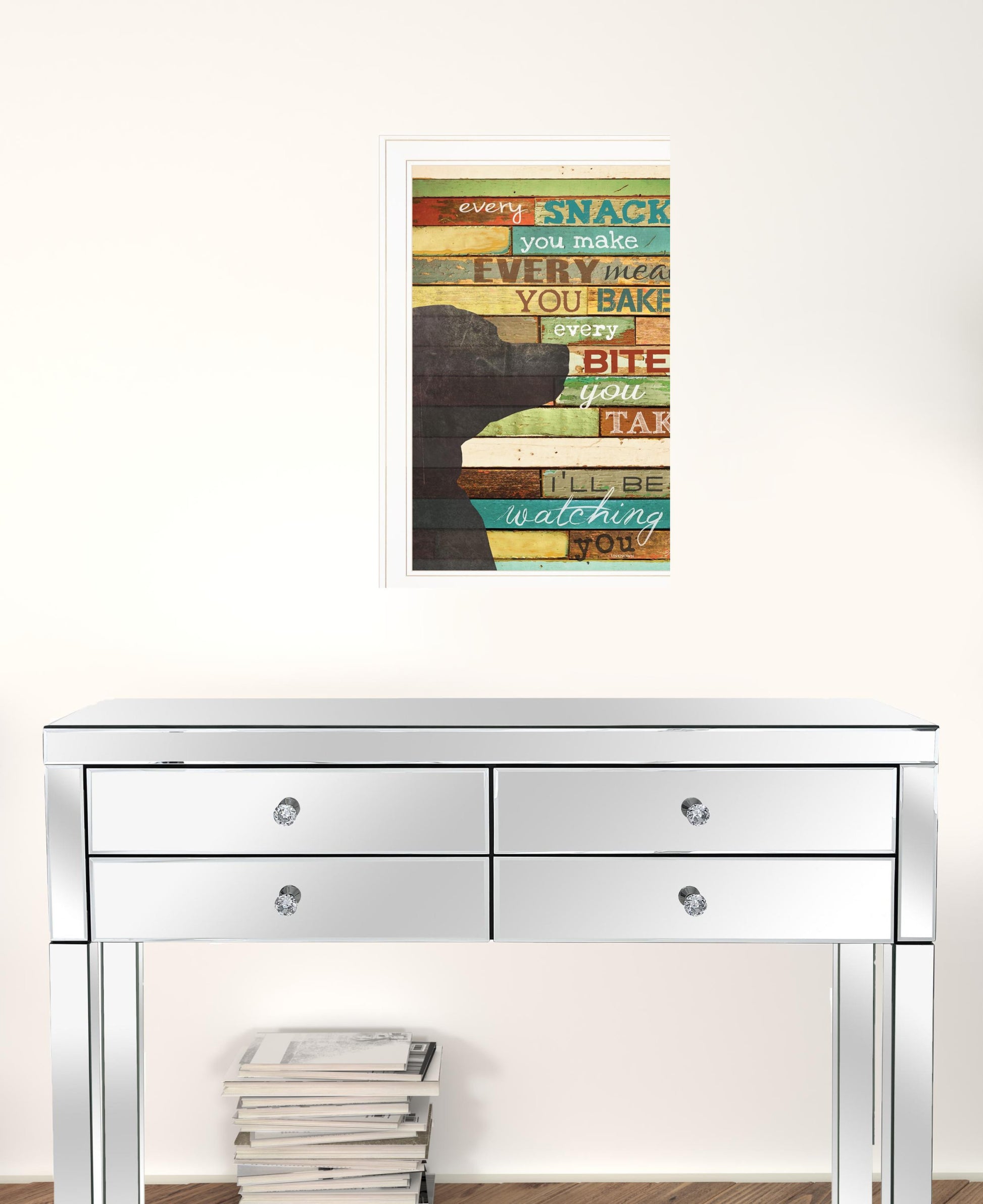 Add an air of fashion to your room and rejuvenate the space with this colorful dog watching you snack white framed print wall art. This print is a visual artistic expression that allows you to decorate your space in style. Reproduced for you on paper, this hanging decorative accent will be a trendy and fashionable way to dress your walls. Adding this hanging wall art to your space to make your room feel more finished and attractive. Instantly liven up your space with this art that brings color and dimension to your walls. 23 inches H x 19 inches W x 1 inches D