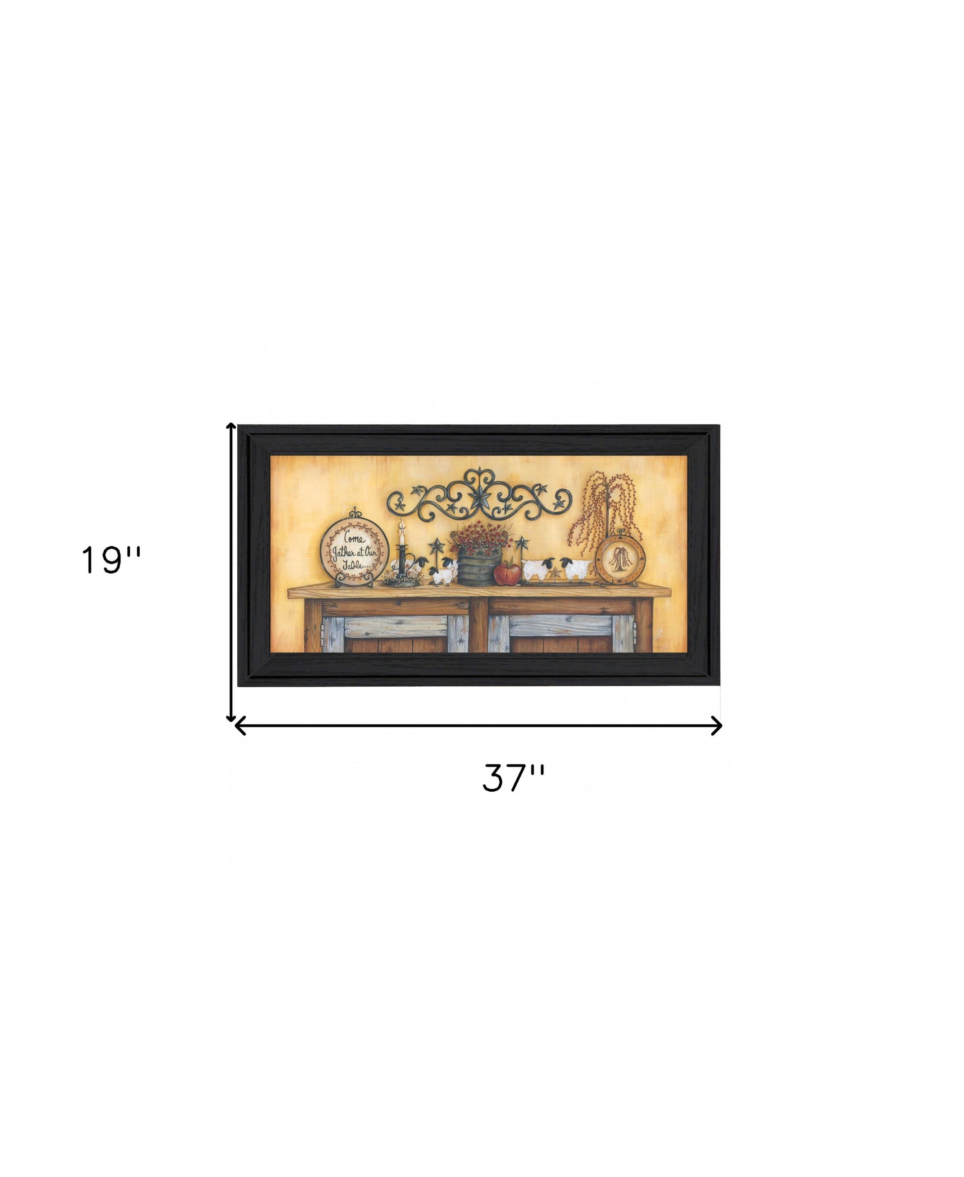 Bring some sizzle to your space with this eye-catching come gather at our table 4 black framed print wall art. This print is a visual artistic expression that allows you to decorate your space in style. Reproduced for you on wood, this hanging decorative accent will be a trendy and fashionable way to dress your walls in a rustic and modern farmhouse vibe. Hang on your wall to add some up to date fashion and decoration. Instantly liven up your space with this art that brings color and dimension to your walls. 19 inches H x 37 inches W x 1 inches D
