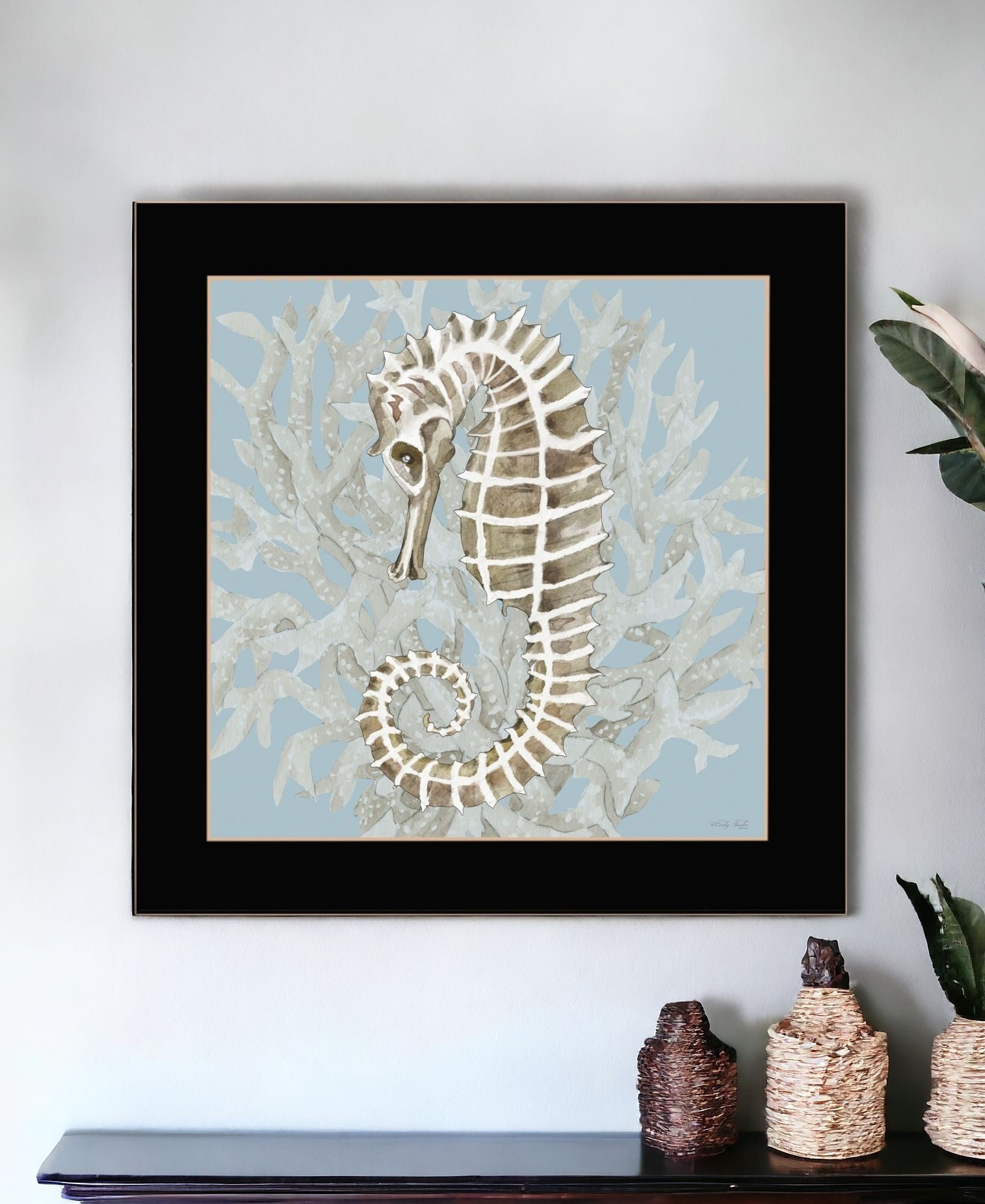 This coral seahorse ii 1 black framed print wall art will add a beautiful decorative accent to your decor. This print is a visual artistic expression that allows you to decorate your space in style. Reproduced for you on wood, this hanging decorative accent will be a trendy and fashionable way to dress your walls in a rustic and modern farmhouse vibe. Hang on your wall to add some up to date fashion and decoration. Utilize this opportunity to create a focal point in the room with this fabulous wall decor option. 14 inches H x 14 inches W x 1 inches D