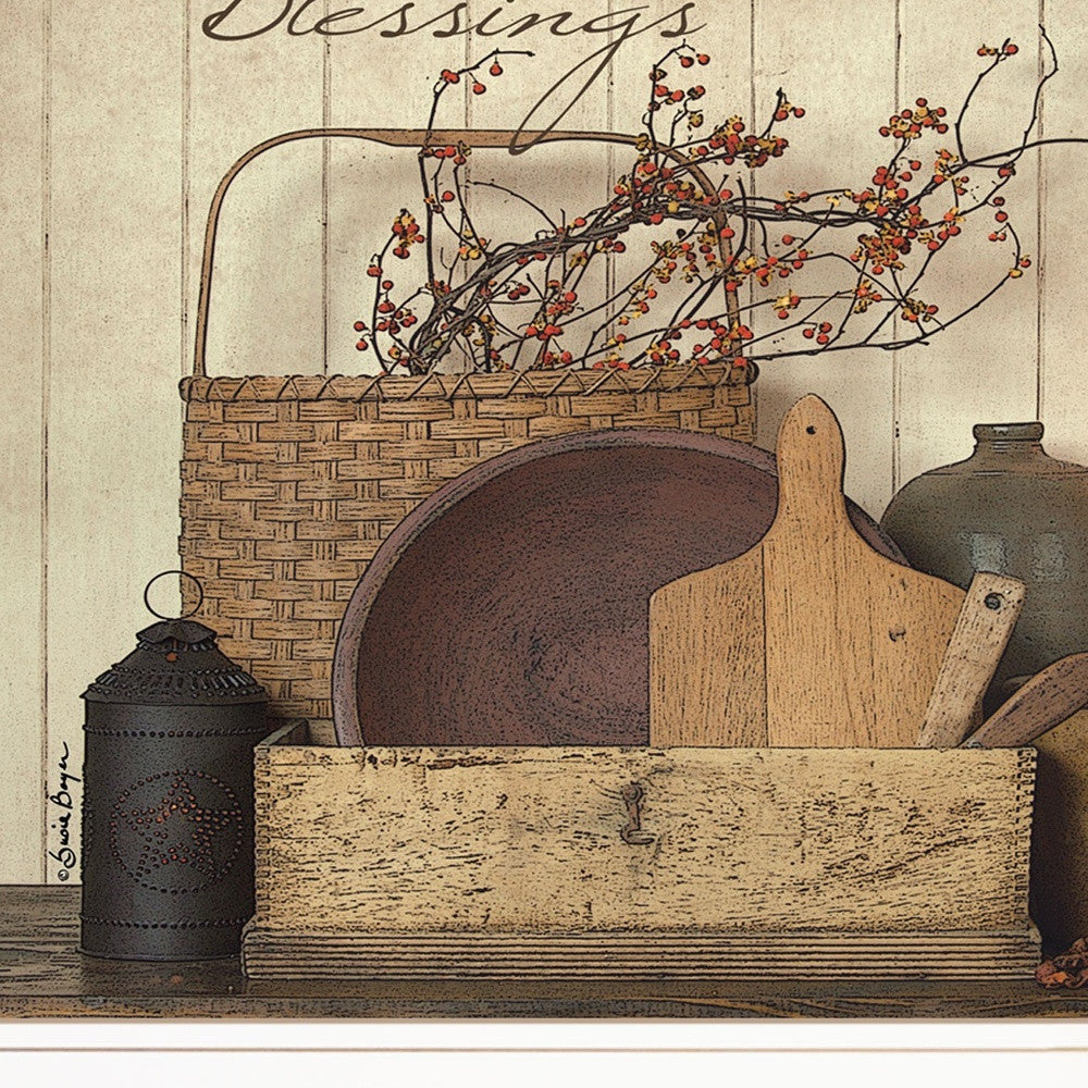 Unique and decorative, this count your blessing 1 white framed print wall art will leave a lasting impression. This print is a visual artistic expression that allows you to decorate your space in style. Reproduced for you on paper, this hanging decorative accent will be a trendy and fashionable way to dress your walls. Adding this hanging wall art to your space to make your room feel more finished and attractive. Instantly liven up your space with this art that brings color and dimension to your walls. 19 inches H x 15 inches W x 1 inches D