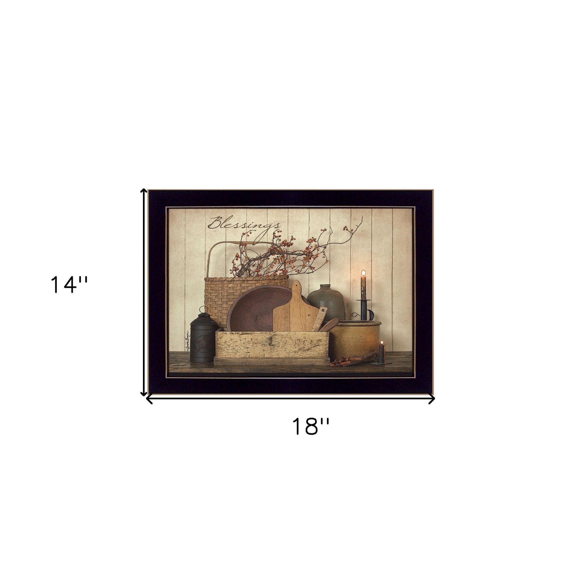 Unique and decorative, this count your blessing 3 black framed print wall art will leave a lasting impression. This print is a visual artistic expression that allows you to decorate your space in style. Reproduced for you on paper, this hanging decorative accent will be a trendy and fashionable way to dress your walls. Hang on your wall to add some up to date fashion and decoration. Instantly liven up your space with this art that brings color and dimension to your walls. 18 inches H x 14 inches W x 1 inches D
