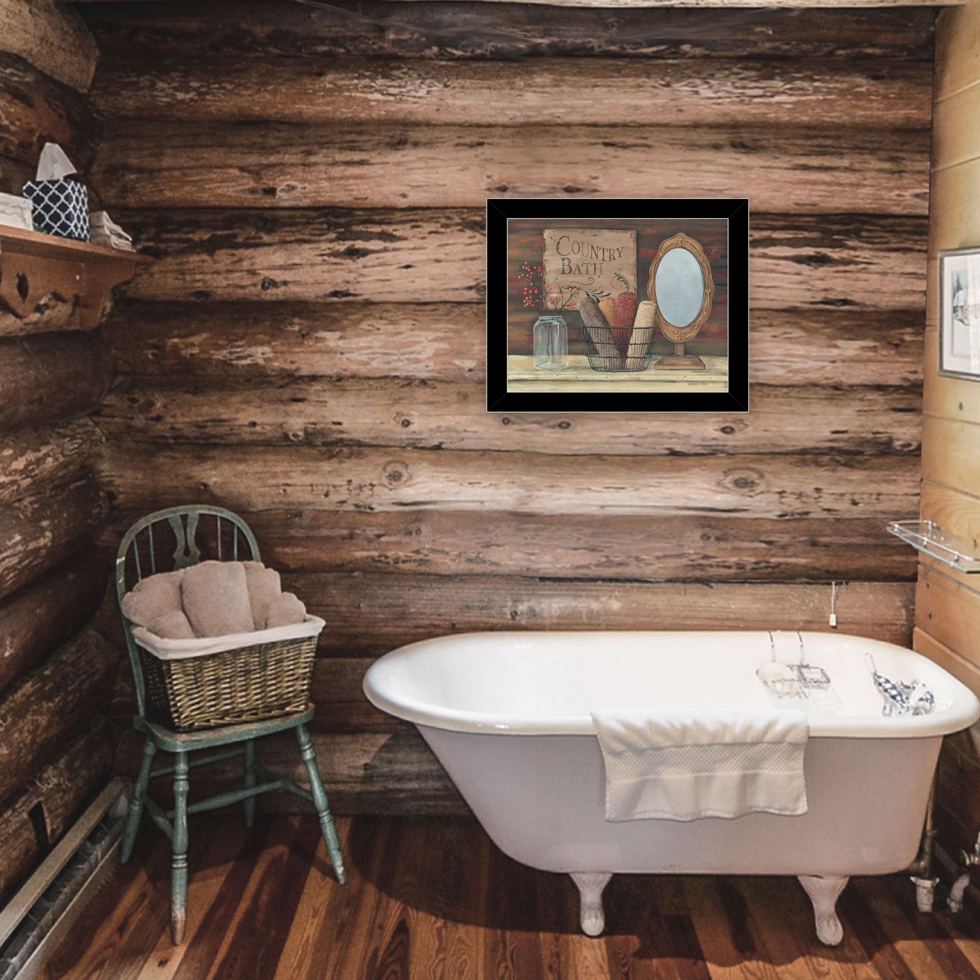 The country bath 7 black framed print wall art is the perfect decorative accessory for your home. This print is a visual artistic expression that allows you to decorate your space in style. Reproduced for you on paper, this hanging decorative accent will be a trendy and fashionable way to dress your walls. Adding this hanging wall art to your space to make your room feel more finished and attractive. Utilize this opportunity to create a focal point in the room with this fabulous wall decor option. 13 inches H x 16 inches W x 1 inches D