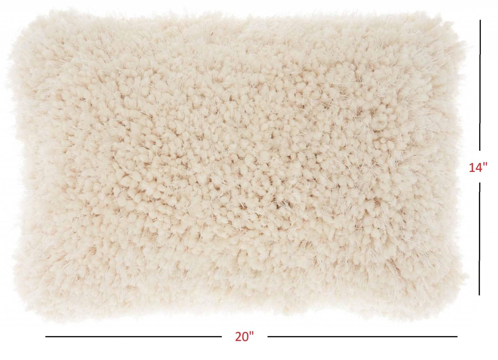 Bring in the best of style and comfort with this modern Cream Knubby Plush Modern Throw Pillow that will instantly add a stylish vibe to any space while accentuating the essence of luxury. Featuring a solid cream hue, this throw pillow manages to take its standard to a different level of style and comfort with its funky shag-like surface texture. Carefully crafted with 100% polyester in twisted piles to ensure a plush feel on the touch while retaining its strength and shine for years to come. Adding class, comfort, and coziness to your modern or contemporary interior is just a step away with the addition of this extravagantly soft and comfortable throw pillow to your space. 14” x 20” x 4"