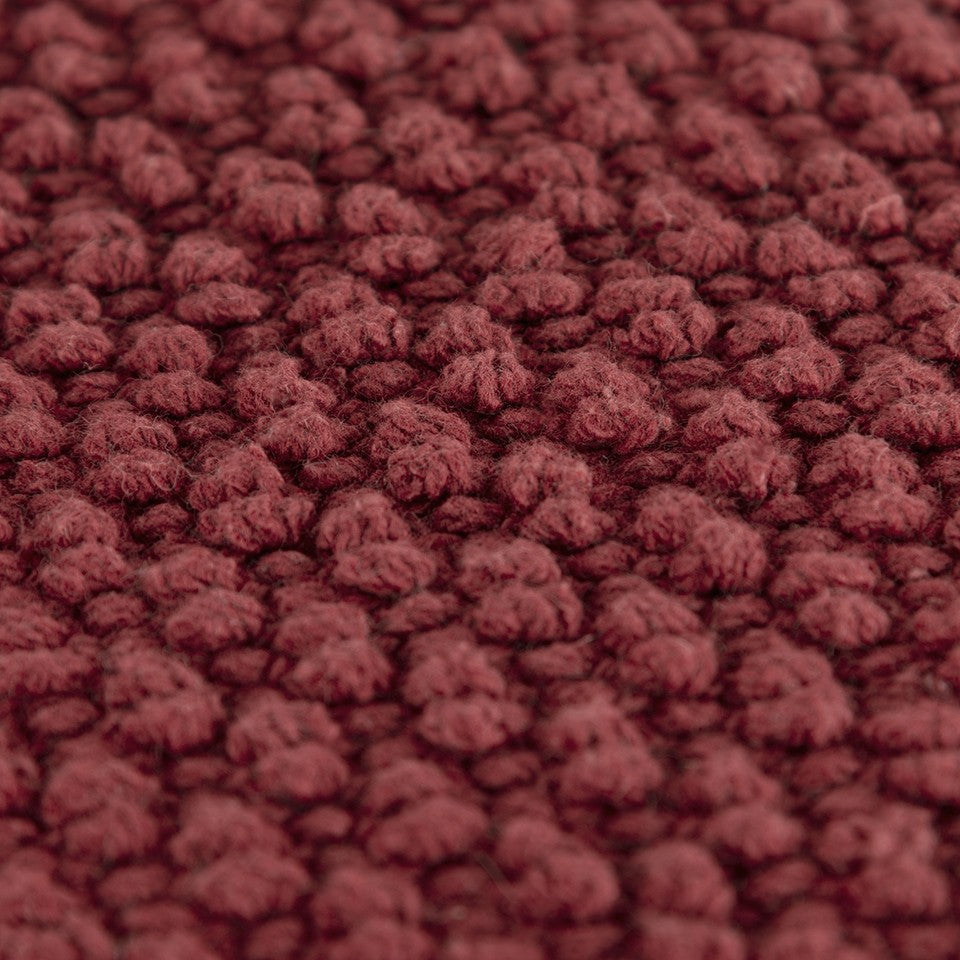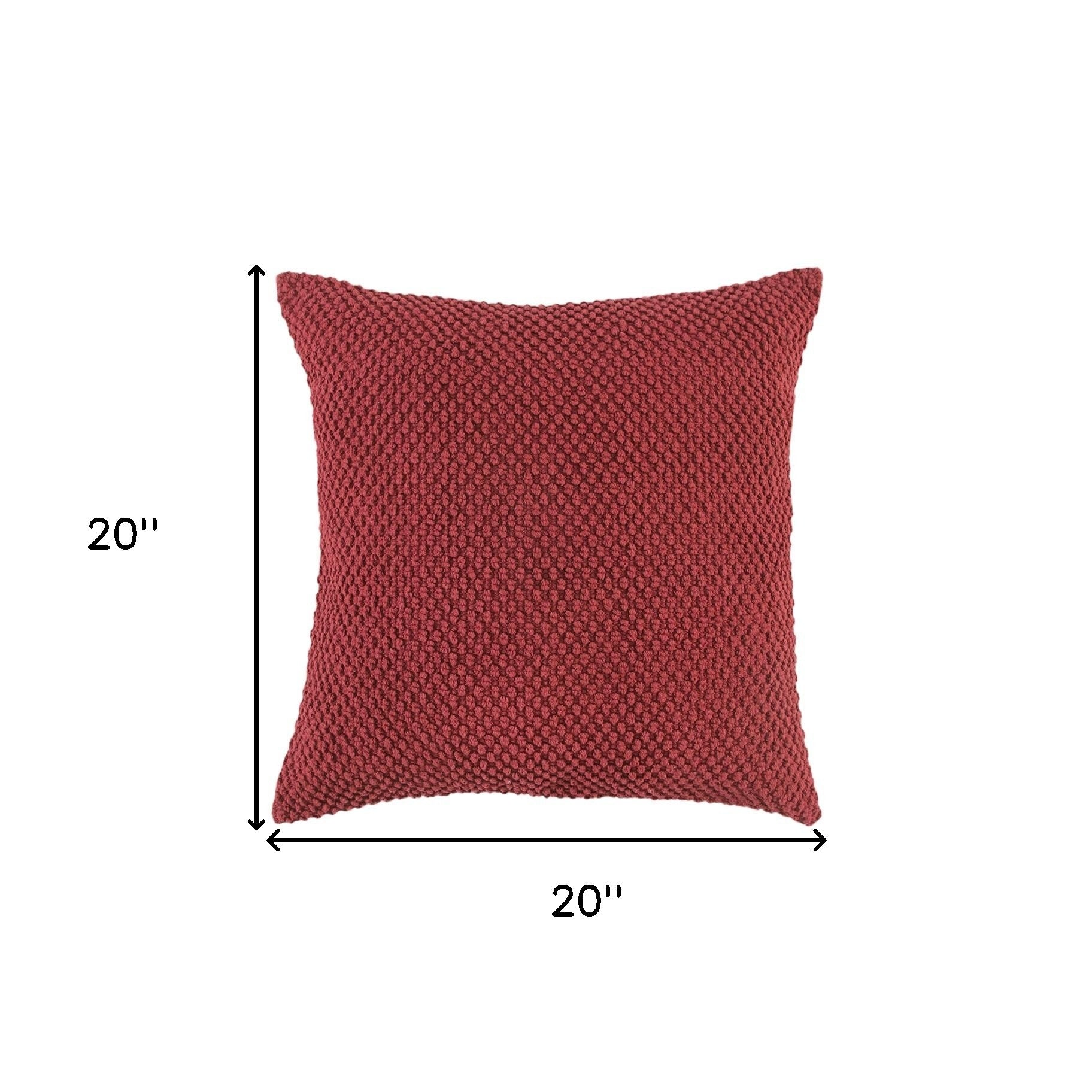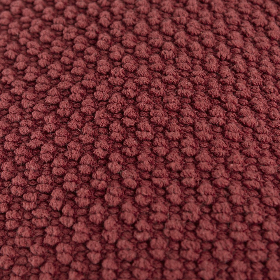 Layer your living room with this Deep Merlot Nubby Textured Modern Throw Pillow on the sofa or couch and it will effortlessly complement its surroundings without compromising style and sophistication. The alluring deep merlot base with rich nubby texture adds dimension to the piece while ensuring a luxurious feel on the touch. Hand-loomed with high-quality cotton fabric to guarantee enhanced durability while the soft polyfill insert gives the piece a fluffy look to support your neck and back. The knife-edge adds to the crisp and clean corner, making it an ideal fit for a variety of style genres. The solid cotton back bears a hidden zipper closure for ease of fill and cleaning. Bring home this beautifully textured throw pillow that can be seamlessly used as a stand-alone piece or paired with multiple patterned decors. 20” x 20” x 6.25”