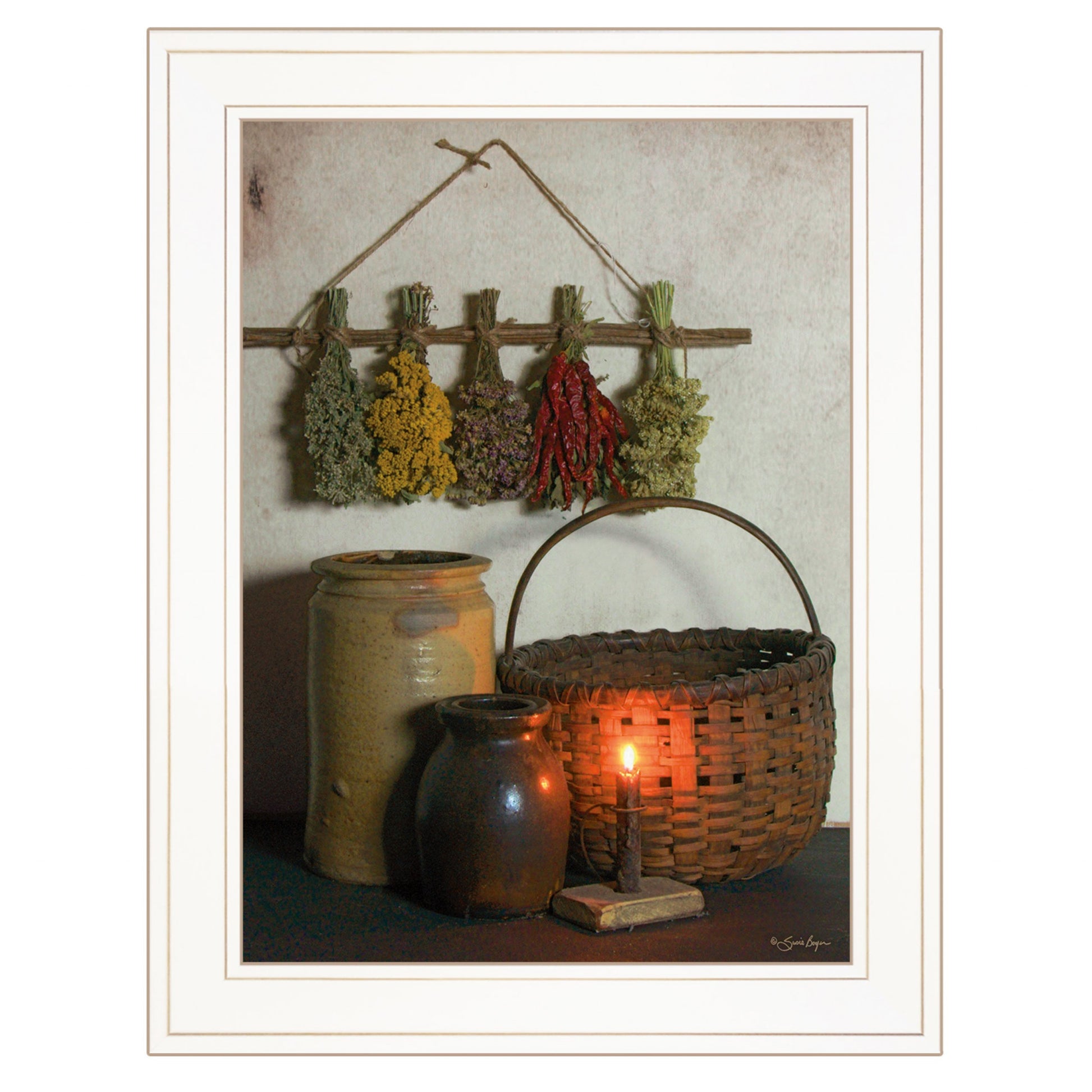 Add an air of fashion to your room and rejuvenate the space with this dried flower white framed print wall art. This print is a visual artistic expression that allows you to decorate your space in style. Reproduced for you on paper, this hanging decorative accent will be a trendy and fashionable way to dress your walls. Hang on your wall to add some up to date fashion and decoration. Utilize this opportunity to create a focal point in the room with this fabulous wall decor option. 19 inches H x 15 inches W x 1 inches D