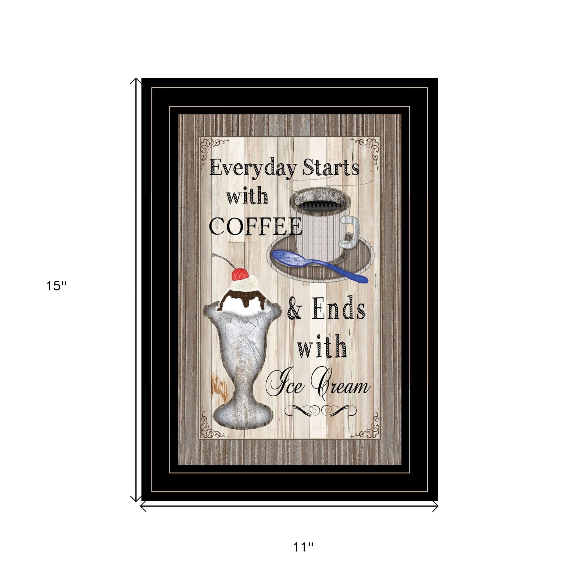 This everyday starts with coffee 2 black framed print wall art will add a beautiful decorative accent to your decor. This print is a visual artistic expression that allows you to decorate your space in style. Reproduced for you on paper, this hanging decorative accent will be a trendy and fashionable way to dress your walls. Adding this hanging wall art to your space to make your room feel more finished and attractive. Utilize this opportunity to create a focal point in the room with this fabulous wall decor option. 15 inches H x 11 inches W x 1 inches D