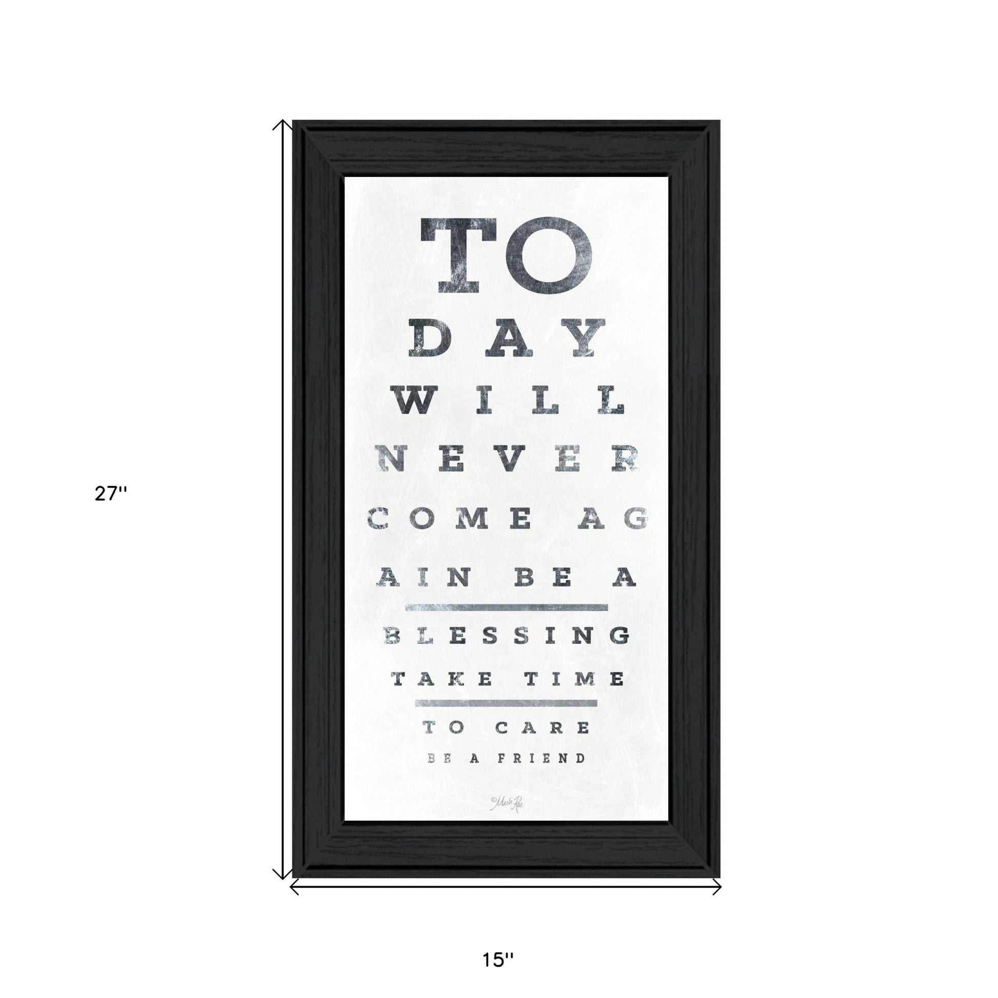 The eye chart I 1 black framed print wall art is the perfect decorative accessory for your home. This print is a visual artistic expression that allows you to decorate your space in style. Reproduced for you on paper, this hanging decorative accent will be a trendy and fashionable way to dress your walls. Adding this hanging wall art to your space to make your room feel more finished and attractive. Utilize this opportunity to create a focal point in the room with this fabulous wall decor option. 27 inches H x 15 inches W x 1 inches D