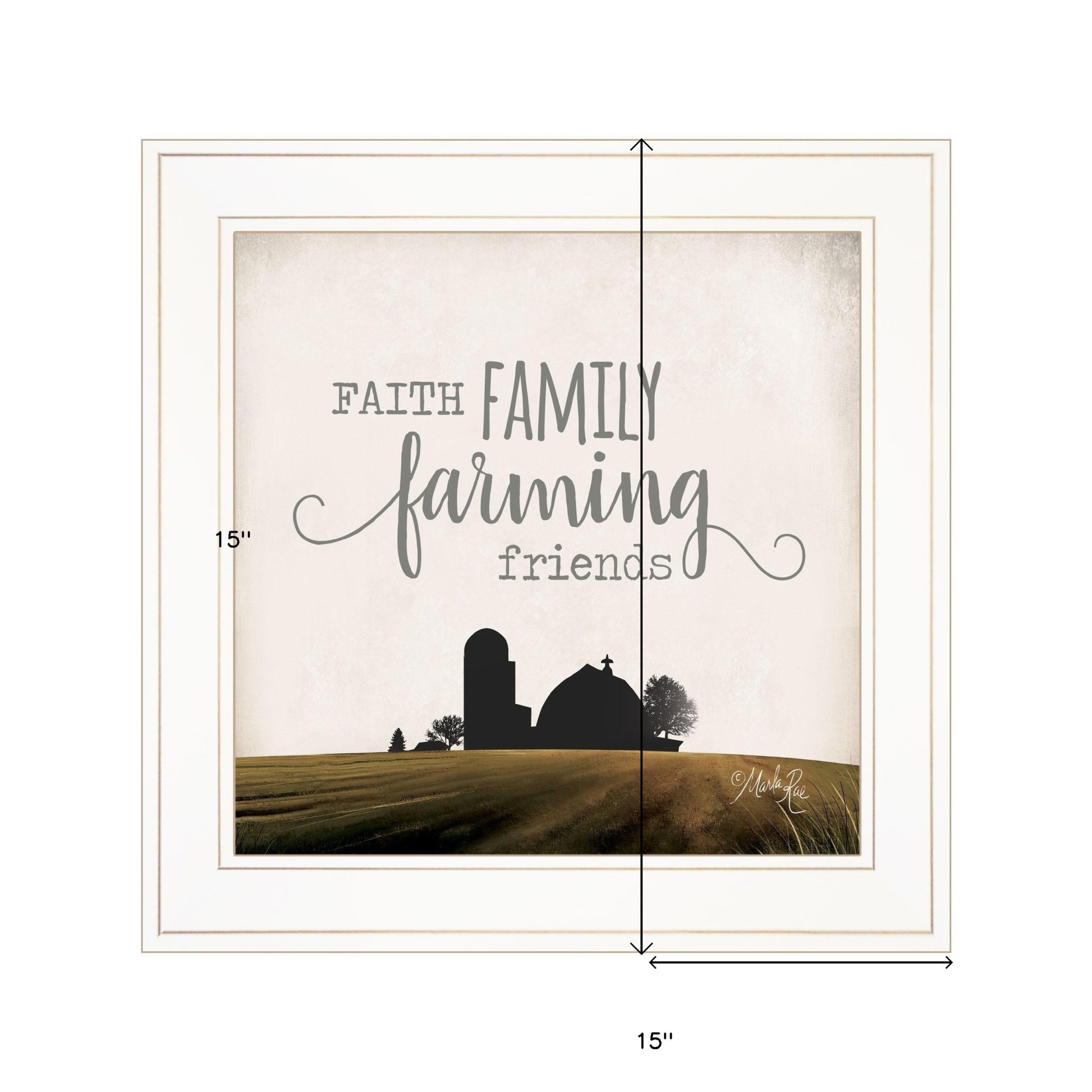 Unique and decorative, this faith family farming friends 1 white framed print wall art will leave a lasting impression. This print is a visual artistic expression that allows you to decorate your space in style. Reproduced for you on paper, this hanging decorative accent will be a trendy and fashionable way to dress your walls. Hang on your wall to add some up to date fashion and decoration. Instantly liven up your space with this art that brings color and dimension to your walls. 15 inches H x 15 inches W x 1 inches D