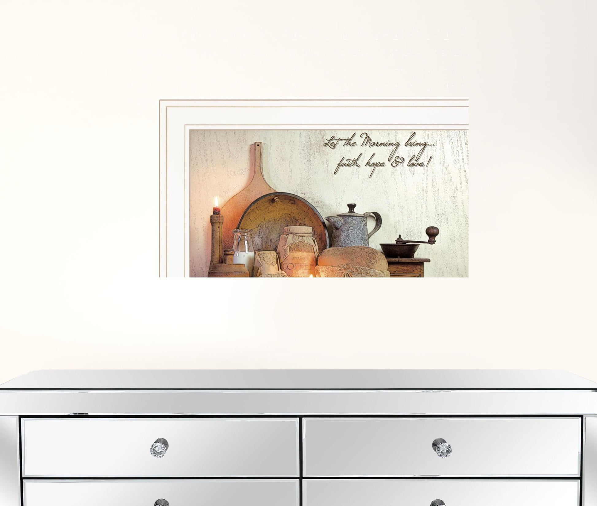 Bring some sizzle to your space with this eye-catching faith hope & love 1 white framed print wall art. This print is a visual artistic expression that allows you to decorate your space in style. Reproduced for you on paper, this hanging decorative accent will be a trendy and fashionable way to dress your walls. Hang on your wall to add some up to date fashion and decoration. Instantly liven up your space with this art that brings color and dimension to your walls. 15 inches H x 19 inches W x 1 inches D