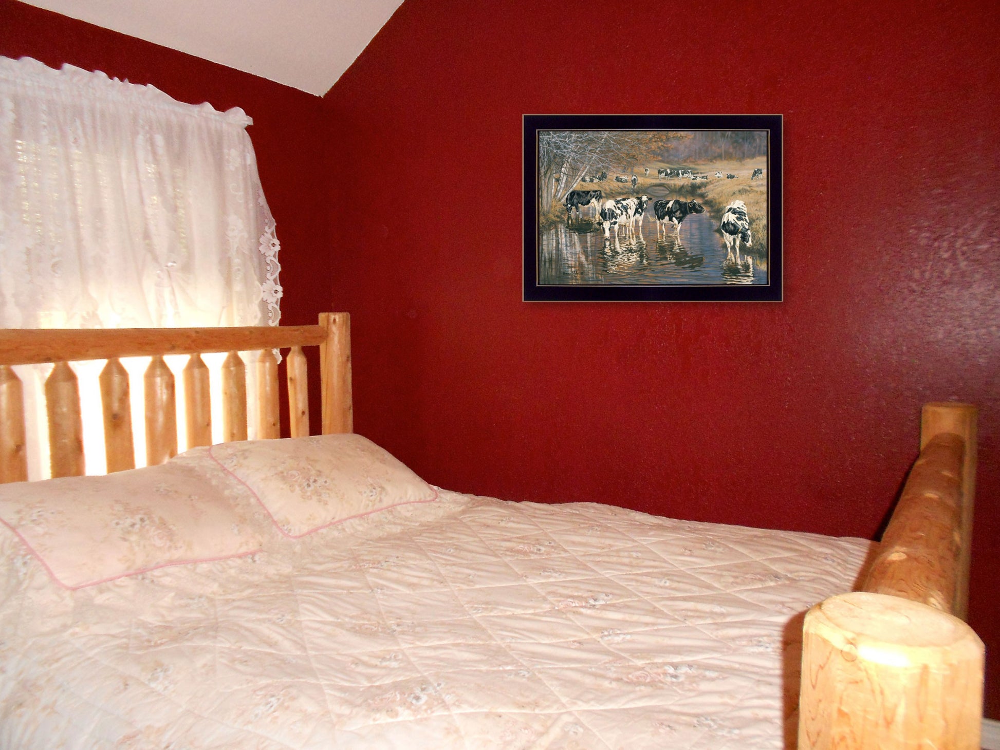 Bring some sizzle to your space with this eye-catching fall reflections holsteins in river black framed print wall art. Update your walls with this farm animal decor. This print is a visual artistic expression that allows you to decorate your space in style. Reproduced for you on paper, this hanging decorative accent will be a trendy and fashionable way to dress your walls. Adding this hanging wall art to your space to make your room feel more finished and attractive. Instantly liven up your space with this art that brings color and dimension to your walls. 14 inches H x 20 inches W x 1 inches D