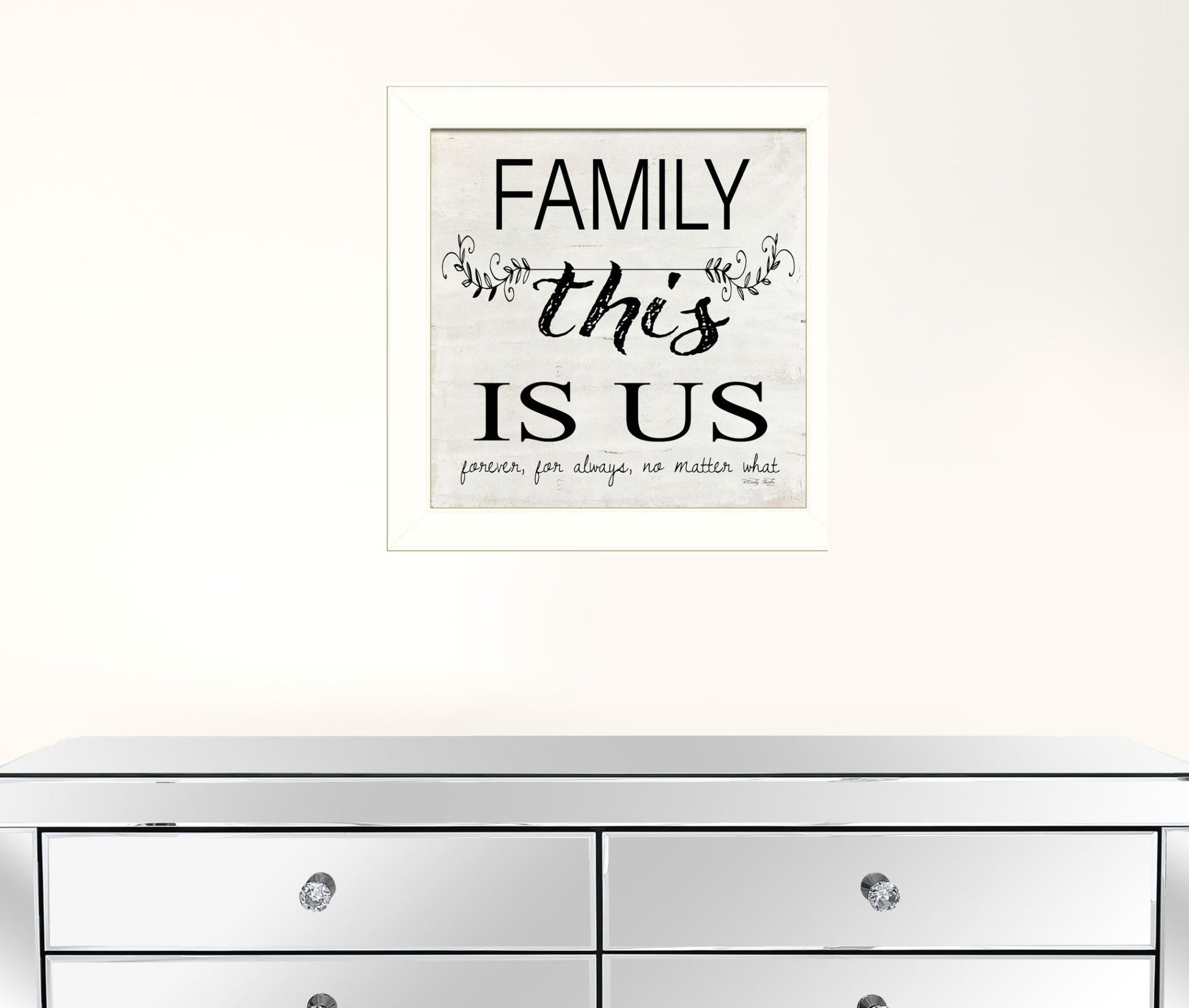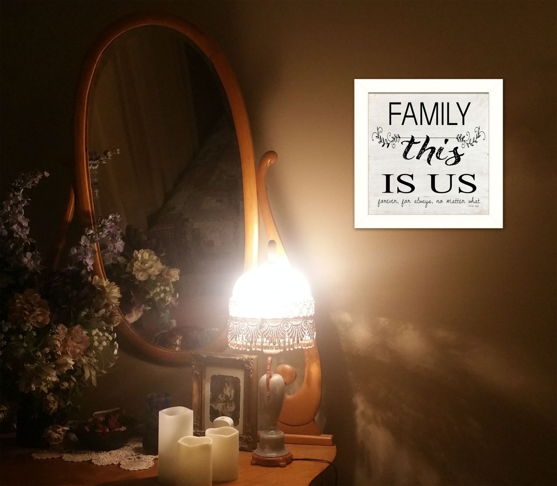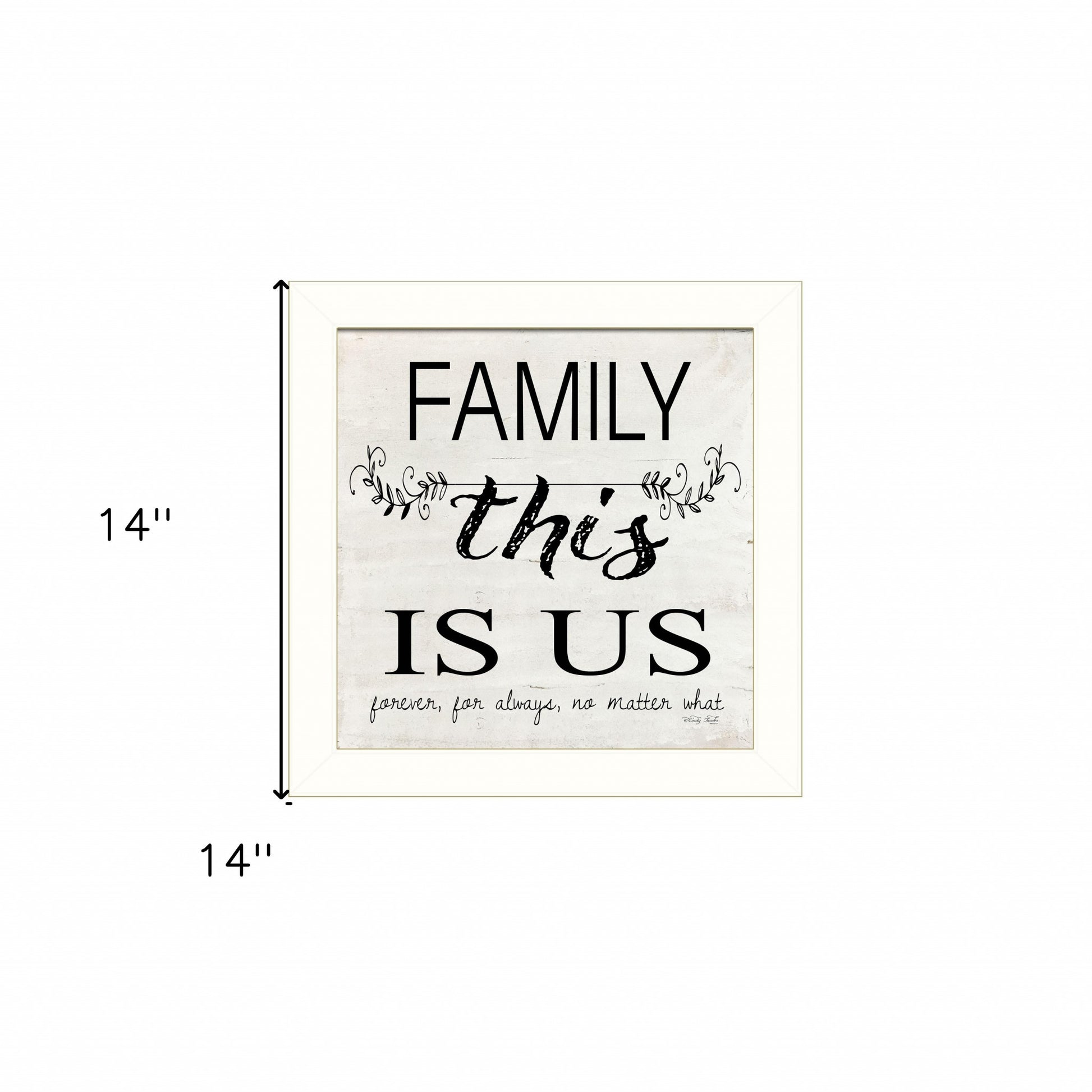 Bring some sizzle to your space with this eye-catching family this is us forever white framed print wall art. This print is a visual artistic expression that allows you to decorate your space in style. Reproduced for you on paper, this hanging decorative accent will be a trendy and fashionable way to dress your walls. Hang on your wall to add some up to date fashion and decoration. Instantly liven up your space with this art that brings color and dimension to your walls. 14 inches H x 14 inches W x 1 inches D