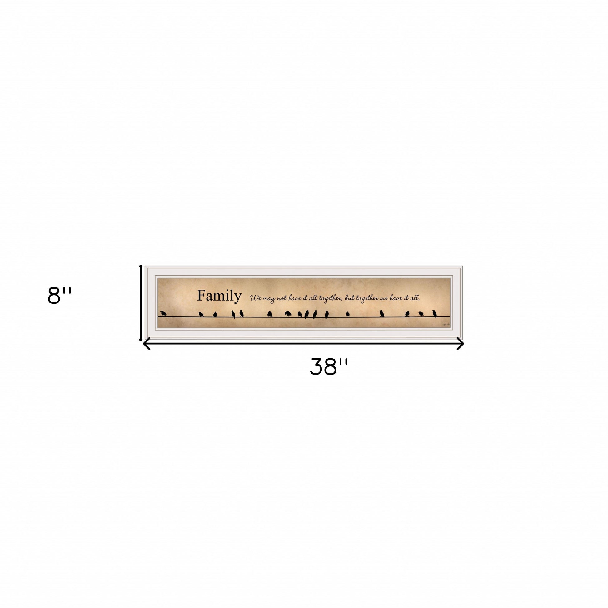 This family together we have it all 1 white framed print wall art will add a beautiful decorative accent to your decor. This print is a visual artistic expression that allows you to decorate your space in style. Reproduced for you on paper, this hanging decorative accent will be a trendy and fashionable way to dress your walls. Adding this hanging wall art to your space to make your room feel more finished and attractive. Utilize this opportunity to create a focal point in the room with this fabulous wall decor option. 8 inches H x 38 inches W x 1 inches D