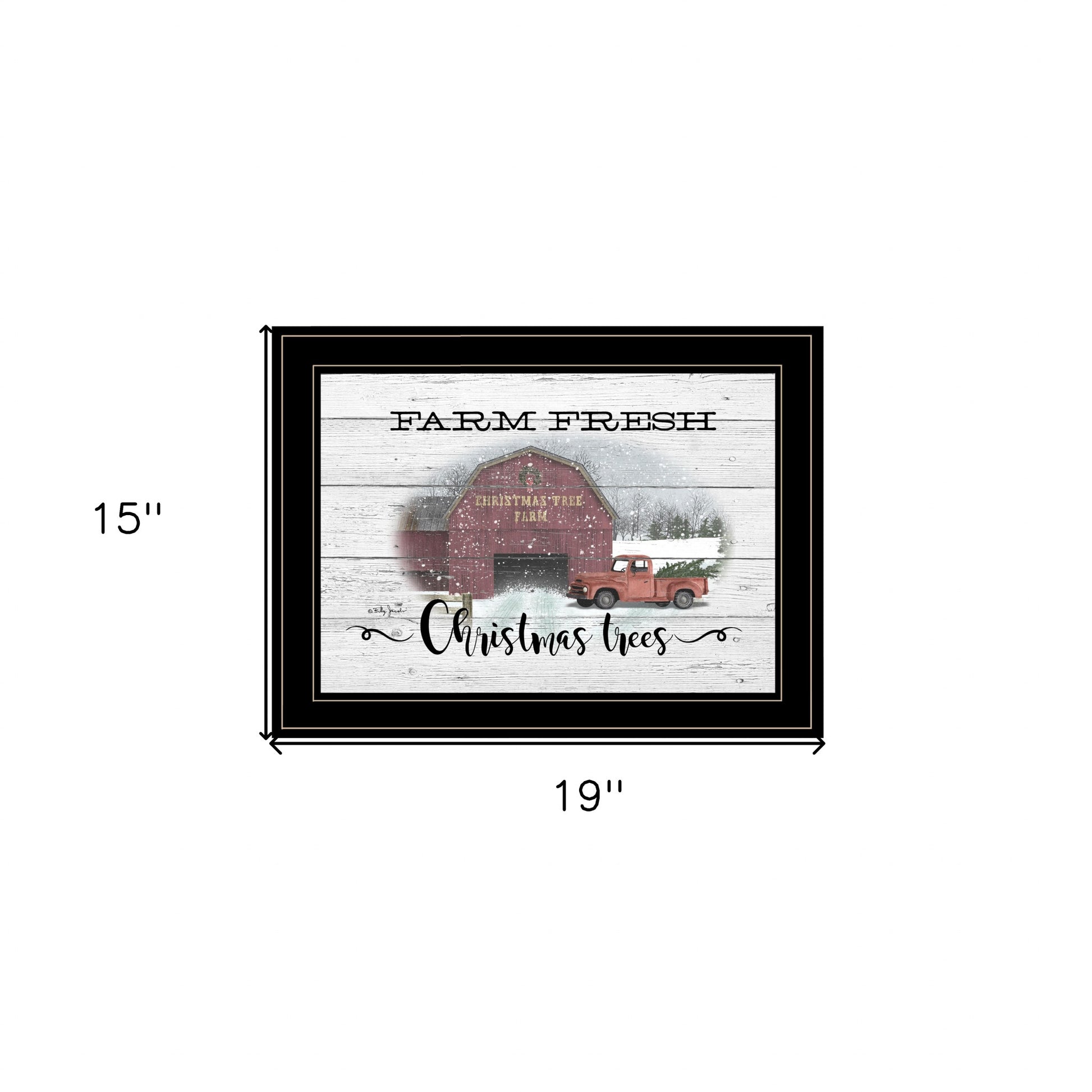 This farm fresh christmas trees 3 black framed print wall art is a great way to celebrate and decorate for the holidays. This print is a visual artistic expression that allows you to decorate your space in style. Reproduced for you on paper, this hanging decorative accent will be a trendy and fashionable way to dress your walls. Adding this hanging wall art to your space to make your room feel more finished and attractive. Utilize this opportunity to create a focal point in the room with this fabulous wall decor option. 15 inches H x 19 inches W x 1 inches D