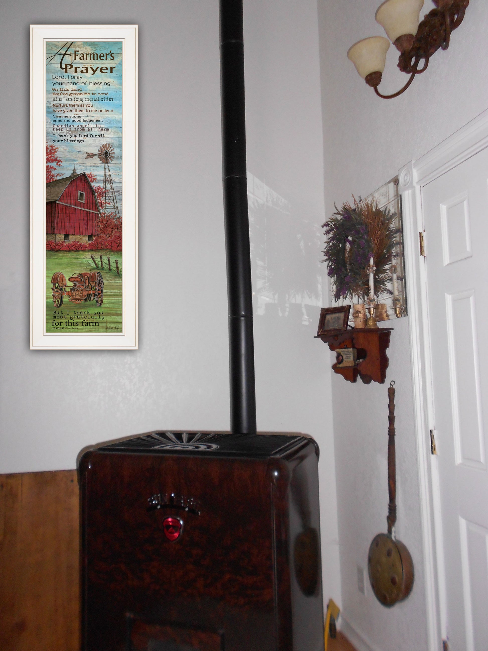 Unique and decorative, this farmers prayer 1 white framed print wall art will leave a lasting impression. This print is a visual artistic expression that allows you to decorate your space in style. Reproduced for you on paper, this hanging decorative accent will be a trendy and fashionable way to dress your walls. Adding this hanging wall art to your space to make your room feel more finished and attractive. Utilize this opportunity to create a focal point in the room with this fabulous wall decor option. 33 inches H x 11 inches W x 1 inches D