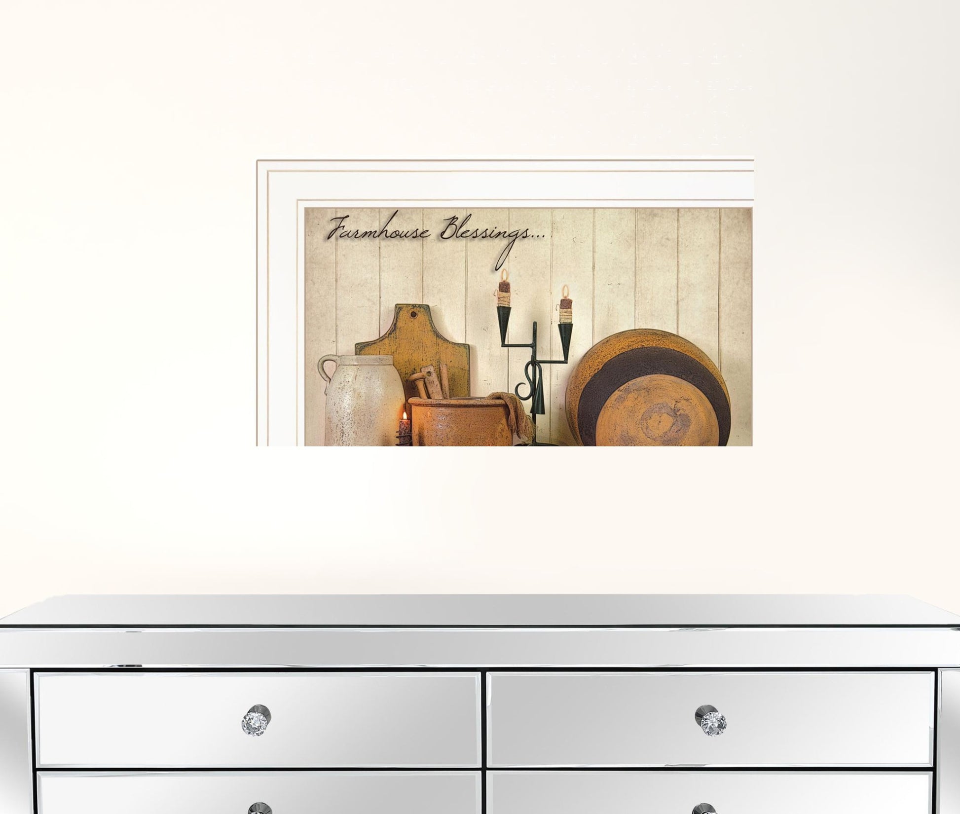 Add an air of fashion to your room and rejuvenate the space with this farmhouse blessings 2 white framed print wall art. This print is a visual artistic expression that allows you to decorate your space in style. Reproduced for you on paper, this hanging decorative accent will be a trendy and fashionable way to dress your walls. Hang on your wall to add some up to date fashion and decoration. Instantly liven up your space with this art that brings color and dimension to your walls. 15 inches H x 19 inches W x 1 inches D