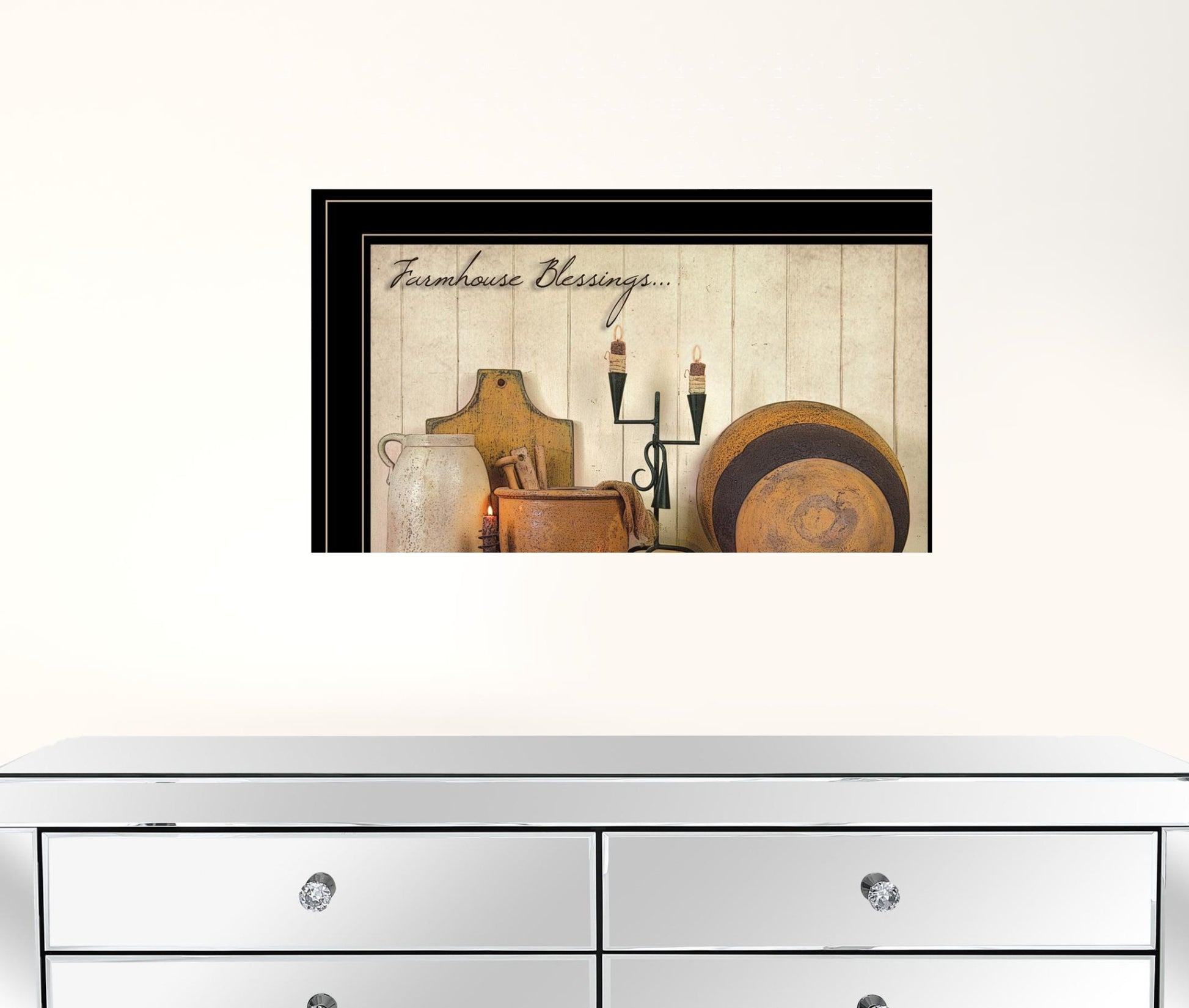 Add an air of fashion to your room and rejuvenate the space with this farmhouse blessings 3 black framed print wall art. This print is a visual artistic expression that allows you to decorate your space in style. Reproduced for you on paper, this hanging decorative accent will be a trendy and fashionable way to dress your walls. Adding this hanging wall art to your space to make your room feel more finished and attractive. Utilize this opportunity to create a focal point in the room with this fabulous wall decor option. 15 inches H x 19 inches W x 1 inches D