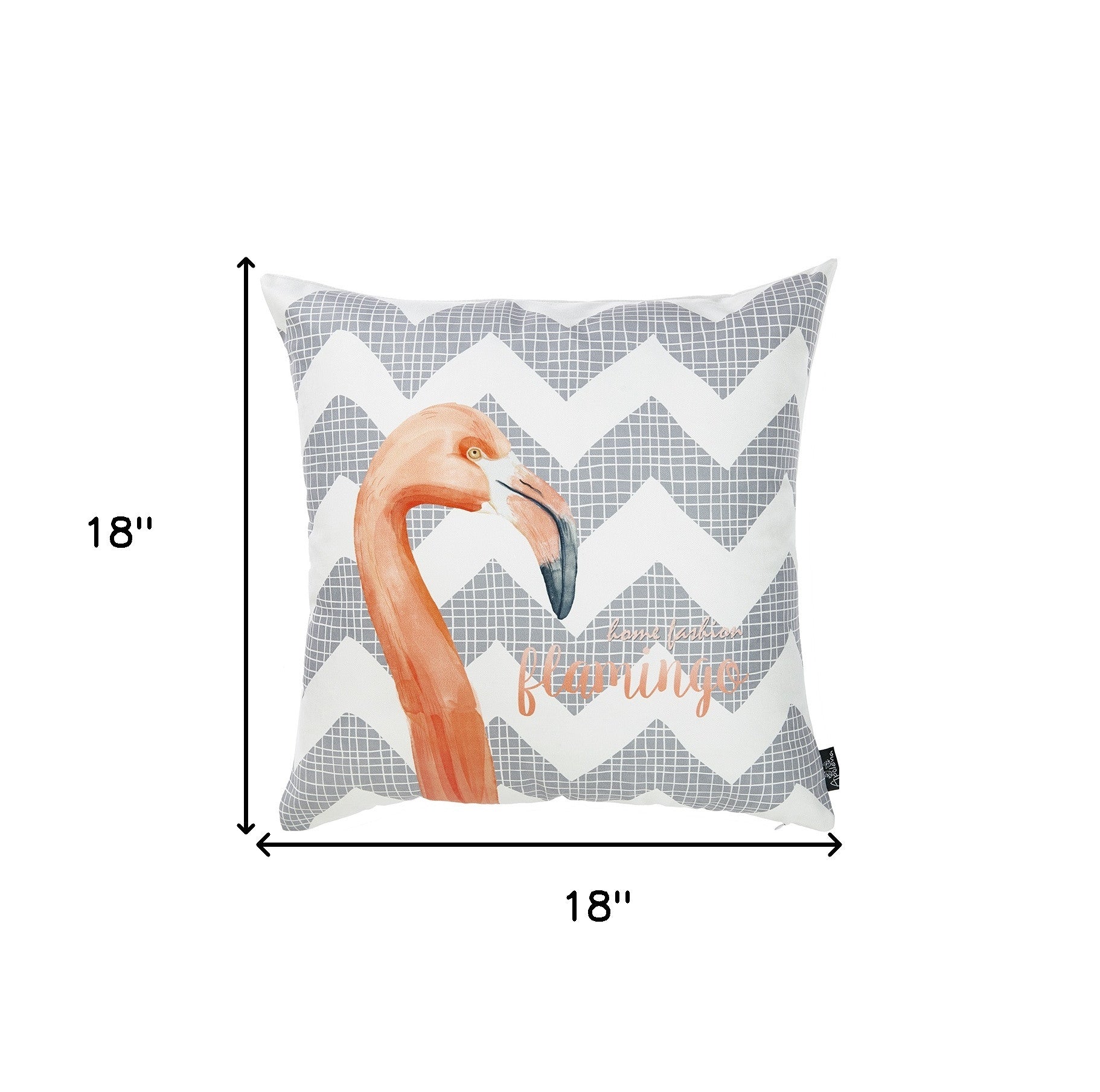 Easily update and refresh your home with this colorful Flamingo and Gray Chevron Decorative Throw Pillow Cover. Instantly upgrade your space with this throw pillow cover made with luxurious brushed polyester fabric. The cheerful and colorful patterns will add hue and style to any room. The high quality digital print is in the front, and the back side is solid white. A hidden zipper closure provides a clean and seamless look all the way around. 18" X 18"