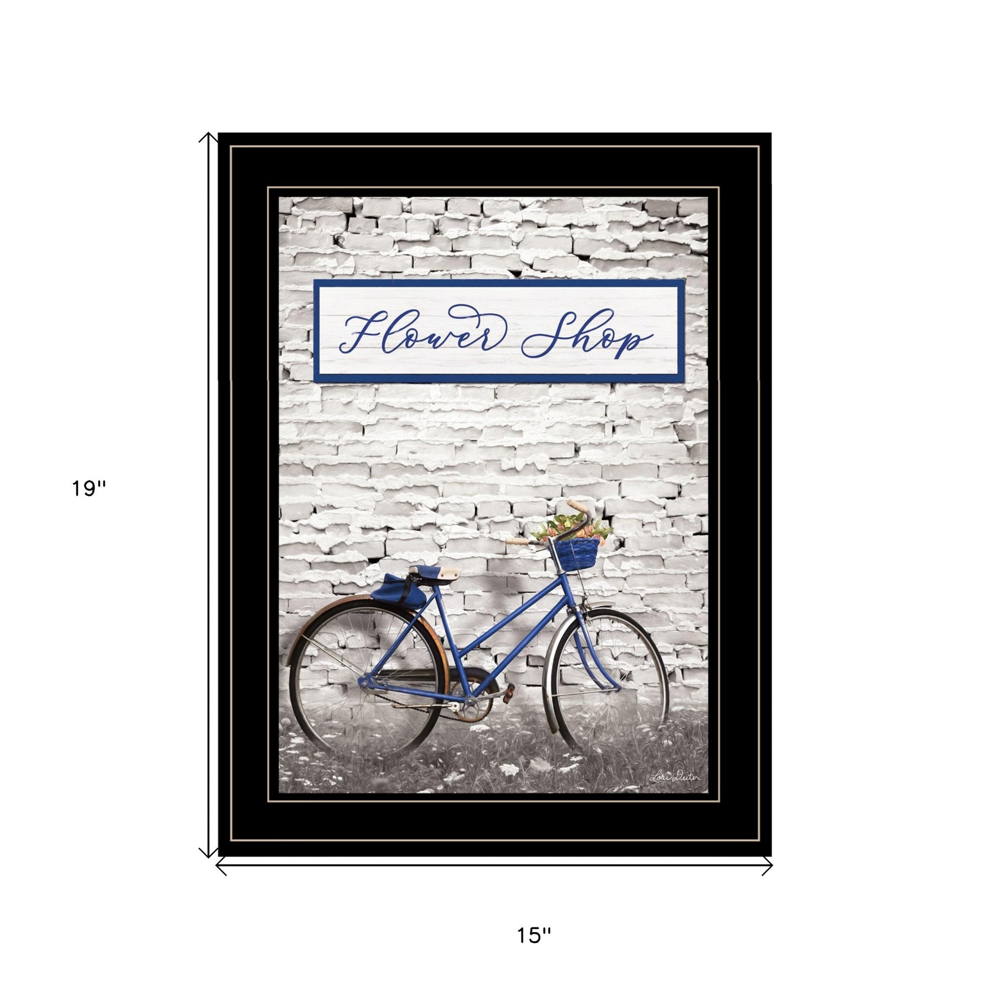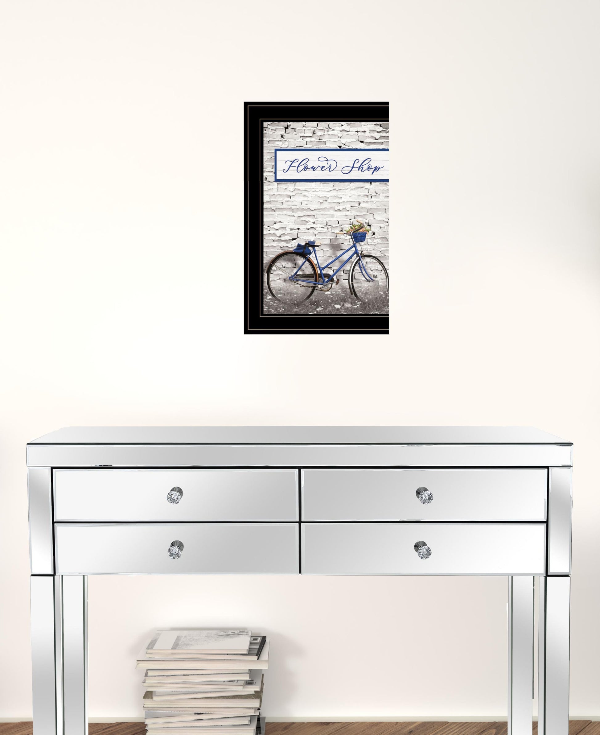 Bring some sizzle to your space with this eye-catching flower shop bicycle 2 black framed print wall art. This print is a visual artistic expression that allows you to decorate your space in style. Reproduced for you on paper, this hanging decorative accent will be a trendy and fashionable way to dress your walls. Hang on your wall to add some up to date fashion and decoration. Utilize this opportunity to create a focal point in the room with this fabulous wall decor option. 19 inches H x 15 inches W x 1 inches D