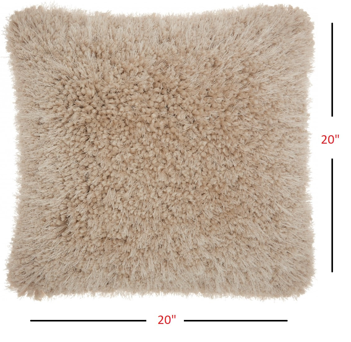 Enjoy all that comfort has to offer with this Fluffy Beige Accent Throw Pillow. The 100% Polyester fiber in non-woven casing makes for a great comfort piece. The shag fabrication gives a soft and calming exterior, adding texture to your home. The soft beige color is the perfect hue to easily style and mix and match with your other decor pieces and pillows. 4" x 20" x 20"