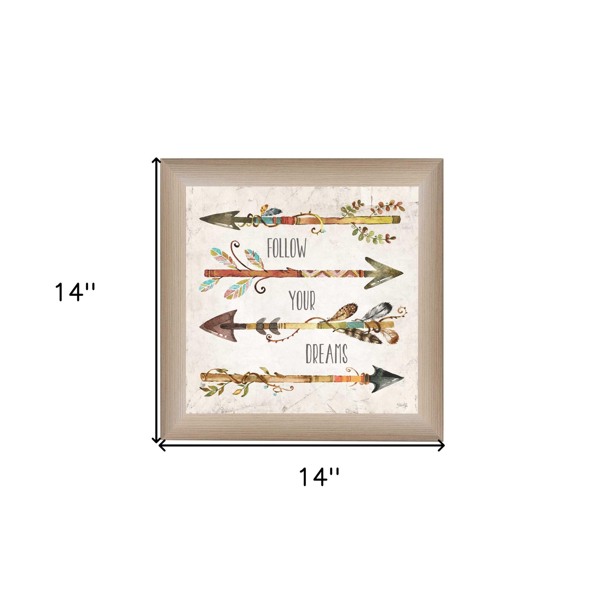 Add an air of fashion to your room and rejuvenate the space with this follow your dreams brown framed print wall art. This print is a visual artistic expression that allows you to decorate your space in style. Reproduced for you on paper, this hanging decorative accent will be a trendy and fashionable way to dress your walls. Adding this hanging wall art to your space to make your room feel more finished and attractive. Instantly liven up your space with this art that brings color and dimension to your walls. 14 inches H x 14 inches W x 1 inches D