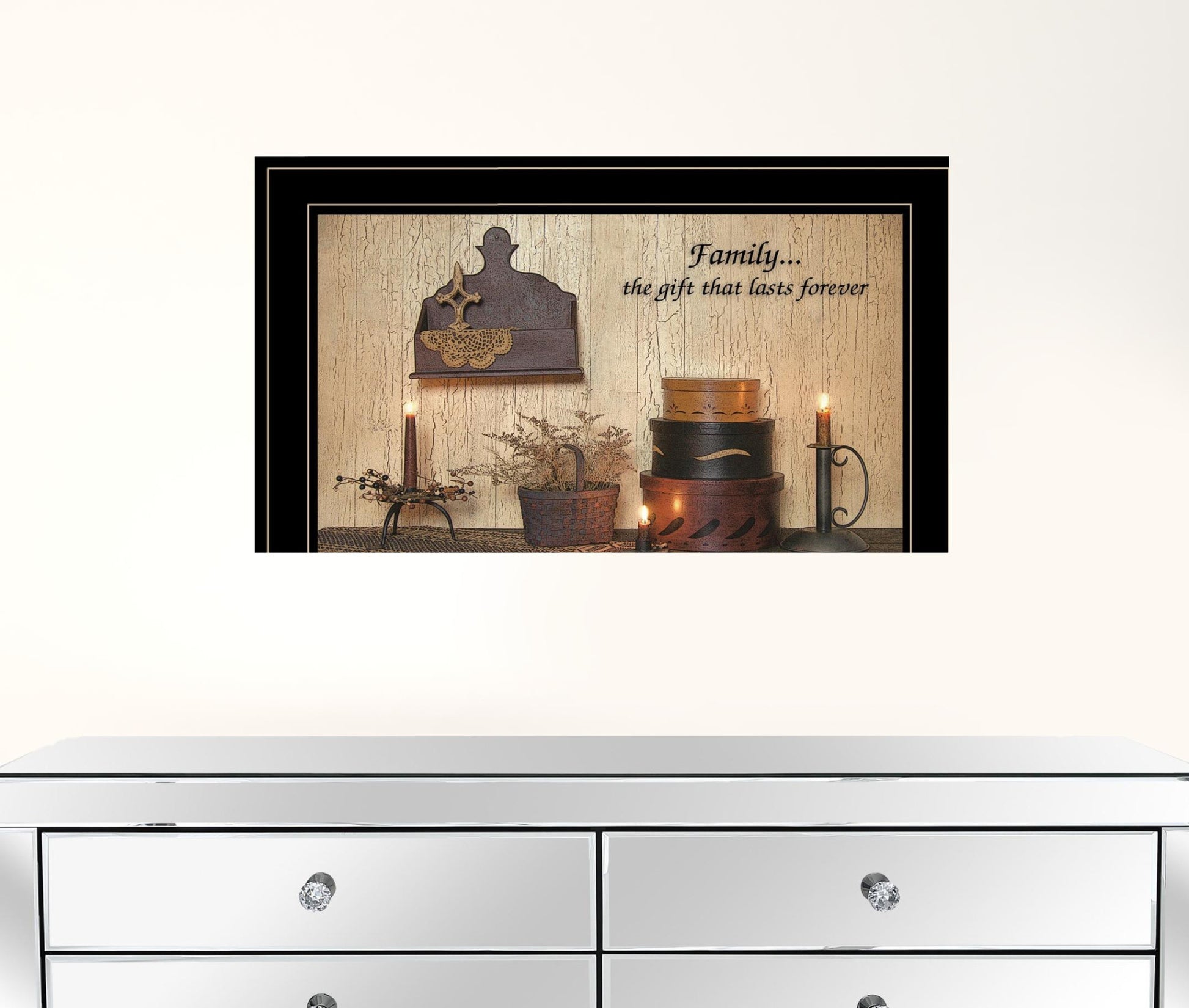 Unique and decorative, this forever family 5 black framed print wall art will leave a lasting impression. This print is a visual artistic expression that allows you to decorate your space in style. Reproduced for you on paper, this hanging decorative accent will be a trendy and fashionable way to dress your walls. Hang on your wall to add some up to date fashion and decoration. Instantly liven up your space with this art that brings color and dimension to your walls. 15 inches H x 19 inches W x 1 inches D