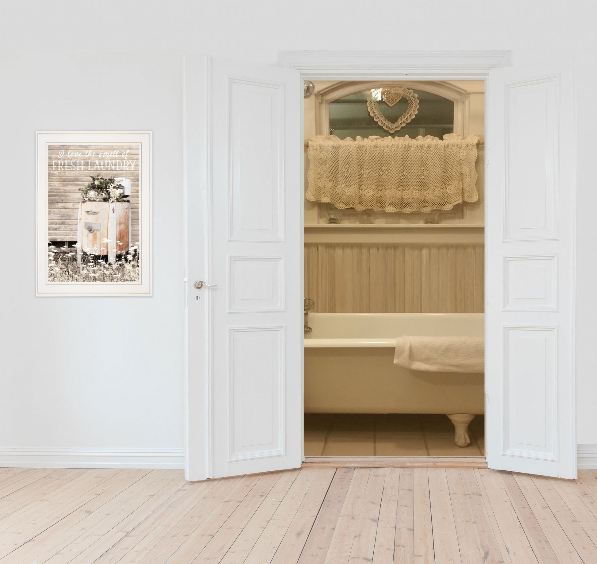 Bring some sizzle to your space with this eye-catching fresh laundry 1 white framed print wall art. This print is a visual artistic expression that allows you to decorate your space in style. Reproduced for you on paper, this hanging decorative accent will be a trendy and fashionable way to dress your walls. Adding this hanging wall art to your space to make your room feel more finished and attractive. Instantly liven up your space with this art that brings color and dimension to your walls. 21 inches H x 15 inches W x 1 inches D