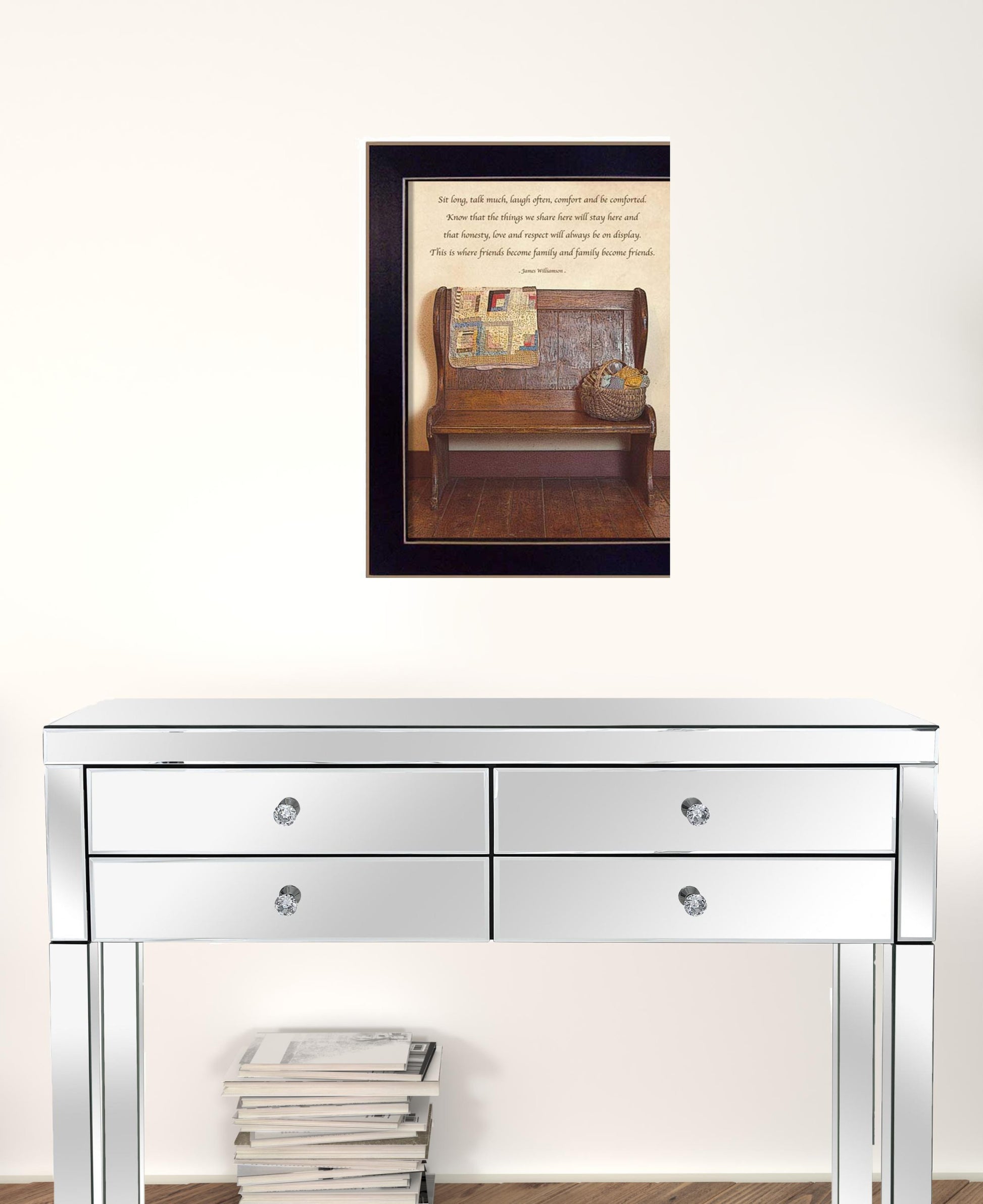 The friends become family black framed print wall art is the perfect decorative accessory for your home. This print is a visual artistic expression that allows you to decorate your space in style. Reproduced for you on paper, this hanging decorative accent will be a trendy and fashionable way to dress your walls. Hang on your wall to add some up to date fashion and decoration. Instantly liven up your space with this art that brings color and dimension to your walls. 22 inches H x 18 inches W x 1 inches D