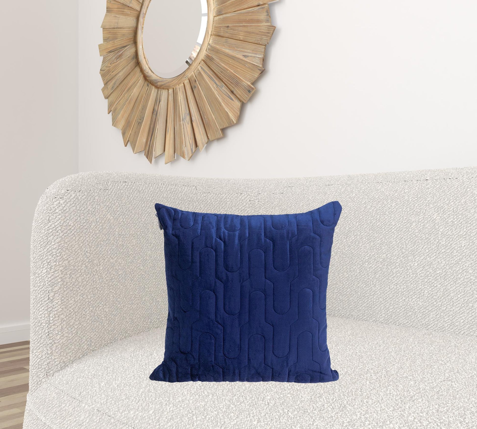 Create a stylish ambience with the Geometric Lush Quilted Blue Throw Pillow. Decorative tufted velvet adorns this luxurious reversible velvet pillow. Designed with a combination of viscose and cotton, this light, warm and fluffy piece with it's geometrical patterns adds a subtle appeal to your living space. Owing to it's bold color versatile feature this pillow can be placed in any corner of your home and develop a sense of character and comfort. A hidden zipper is neatly concealed with a flap making it functional for easy cleaning and restoring. 20" x 20" x 4"