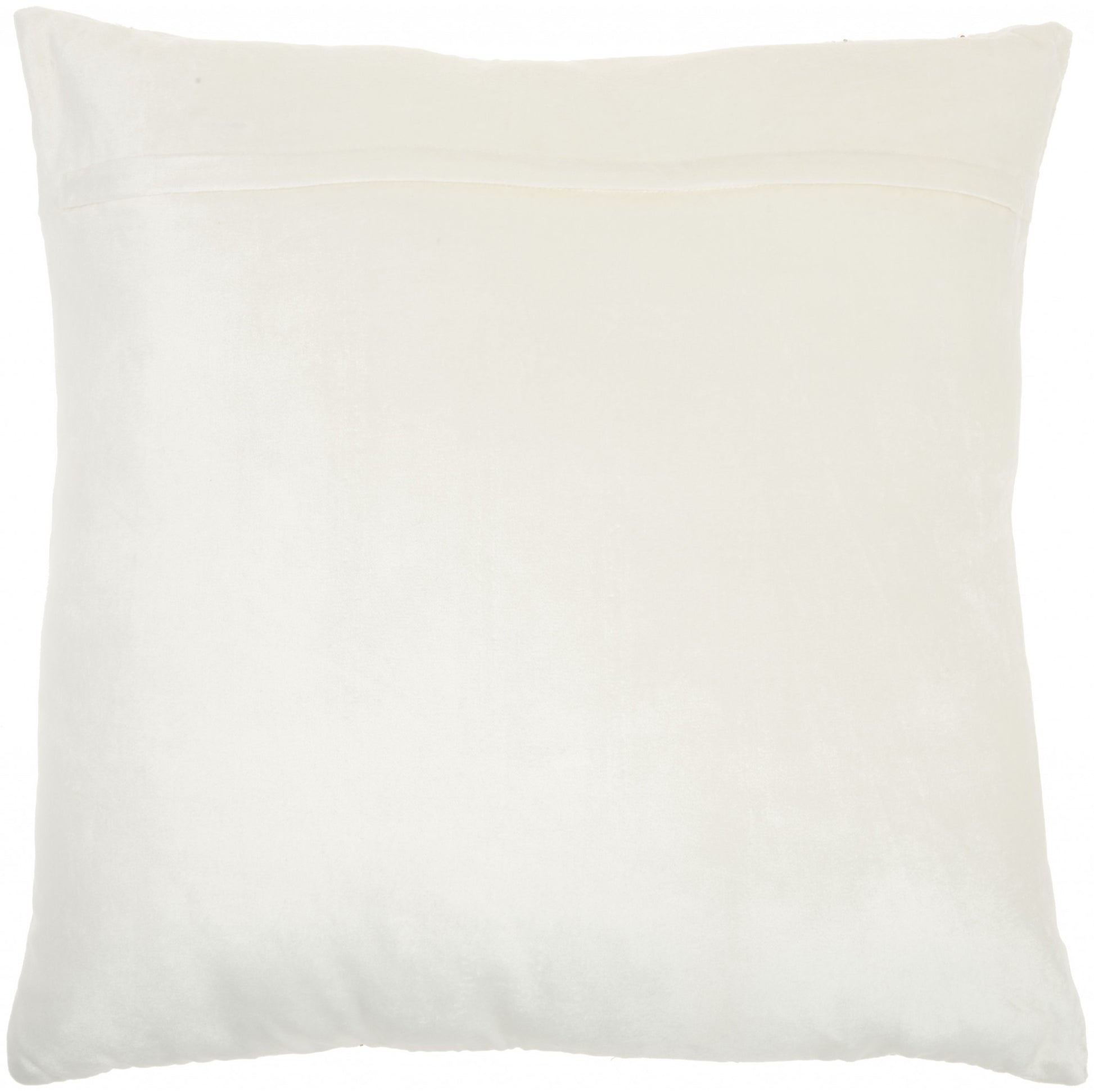 Achieve elegance and glamour in your interior with this Glam Ivor and Gold Accent Throw Pillow with Beaded Details. This expertly handcrafted velvet pillow is the perfect piece to scatter on your sofa or bed with its added detail of beaded strands running along the front cover. The modern ivory velvet cover provides an extra softness and luxurious aesthetic to the pillow. The zipper closure feature allows for easy inner interchangeabilty, making this pillow a practical and glamorous must-have! 5" x 20" x 20"