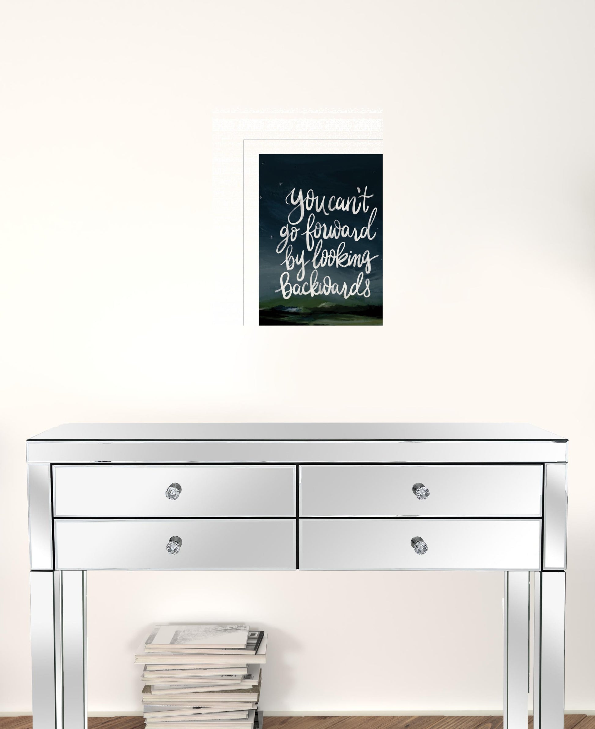 This go forwards not backwards 1 white framed print wall art will add a beautiful decorative accent to your decor. This print is a visual artistic expression that allows you to decorate your space in style. Reproduced for you on wood, this hanging decorative accent will be a trendy and fashionable way to dress your walls in a rustic and modern farmhouse vibe. Adding this hanging wall art to your space to make your room feel more finished and attractive. Utilize this opportunity to create a focal point in the room with this fabulous wall decor option. 18 inches H x 14 inches W x 1 inches D