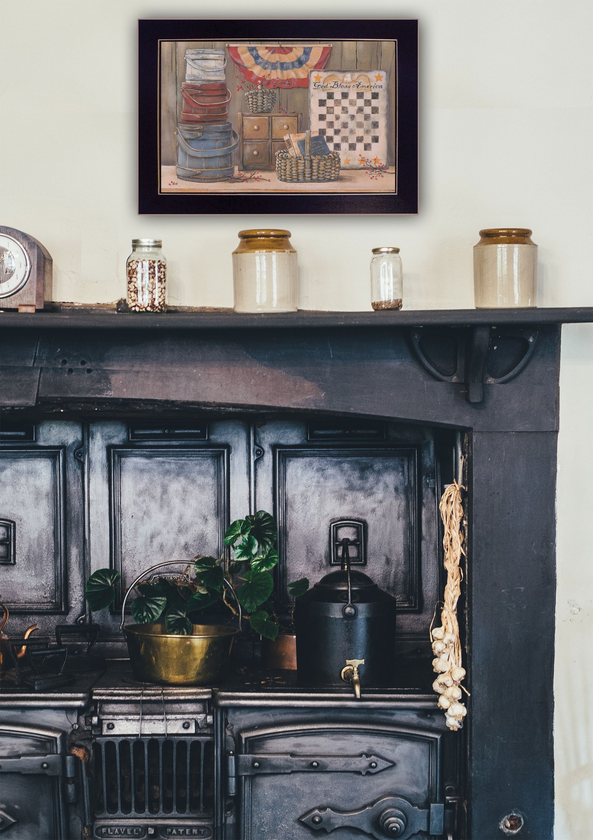 Add an air of fashion to your room and rejuvenate the space with this god bless america 1 black framed print wall art. This print is a visual artistic expression that allows you to decorate your space in style. Reproduced for you on paper, this hanging decorative accent will be a trendy and fashionable way to dress your walls. Hang on your wall to add some up to date fashion and decoration. Instantly liven up your space with this art that brings color and dimension to your walls. 14 inches H x 18 inches W x 1 inches D