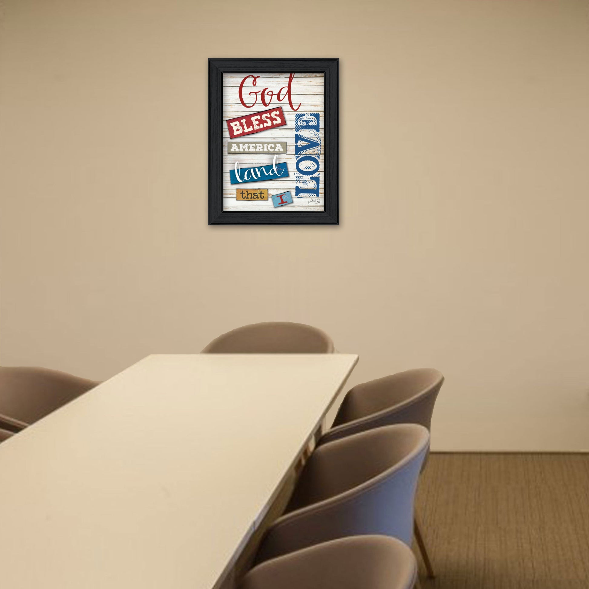 Unique and decorative, this god bless america 4 black framed print wall art will leave a lasting impression. This print is a visual artistic expression that allows you to decorate your space in style. Reproduced for you on paper, this hanging decorative accent will be a trendy and fashionable way to dress your walls. Hang on your wall to add some up to date fashion and decoration. Instantly liven up your space with this art that brings color and dimension to your walls. 18 inches H x 14 inches W x 1 inches D