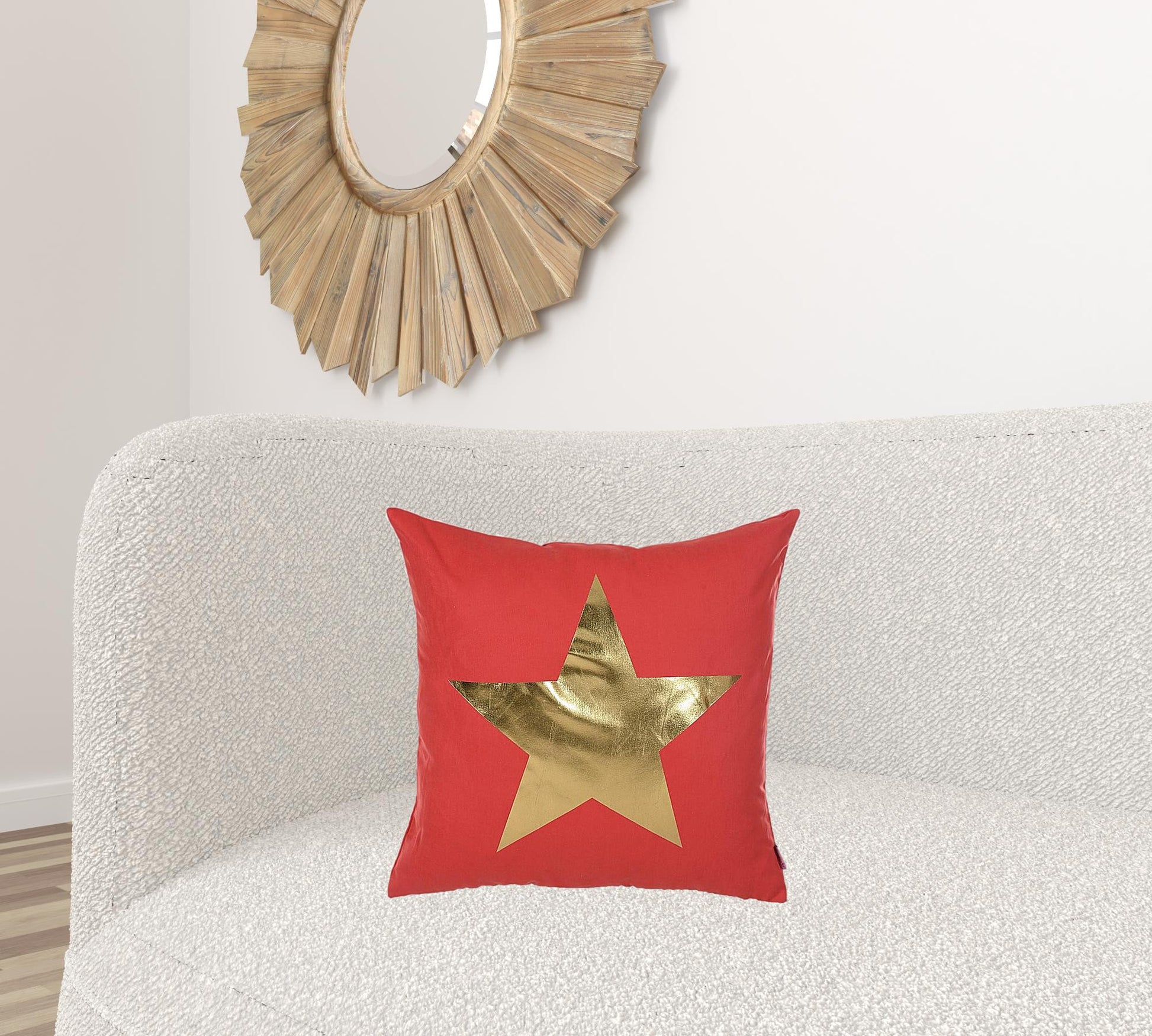 Easily update and refresh your home with this colorful Gold and Red Center Star Decorative Throw Pillow Cover. Instantly upgrade your space with this throw pillow cover made with luxurious brushed polyester fabric. The cheerful and colorful patterns will add hue and style to any room. The high quality digital print is in the front, and the back side is solid red. A hidden zipper closure provides a clean and seamless look all the way around. 18" X 18"