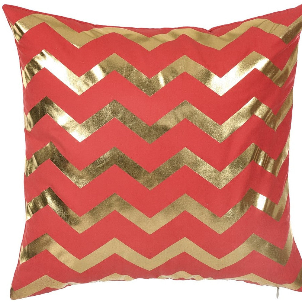 Gold And Red Chevron Decorative Throw Pillow Cover