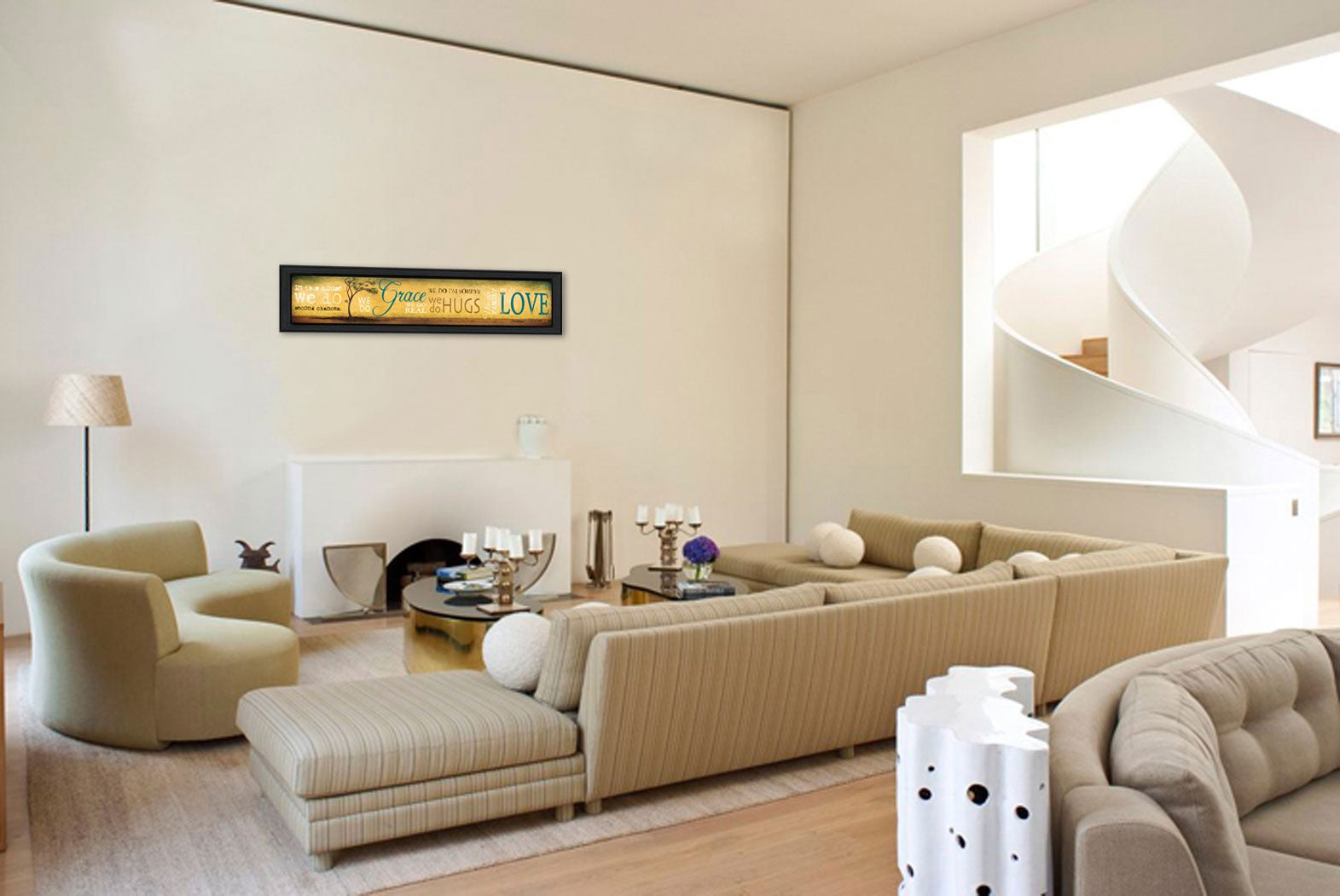 Unique and decorative, this grace and love black framed print wall art will leave a lasting impression. This print is a visual artistic expression that allows you to decorate your space in style. Reproduced for you on paper, this hanging decorative accent will be a trendy and fashionable way to dress your walls. Hang on your wall to add some up to date fashion and decoration. Instantly liven up your space with this art that brings color and dimension to your walls. 9 inches H x 39 inches W x 1 inches D