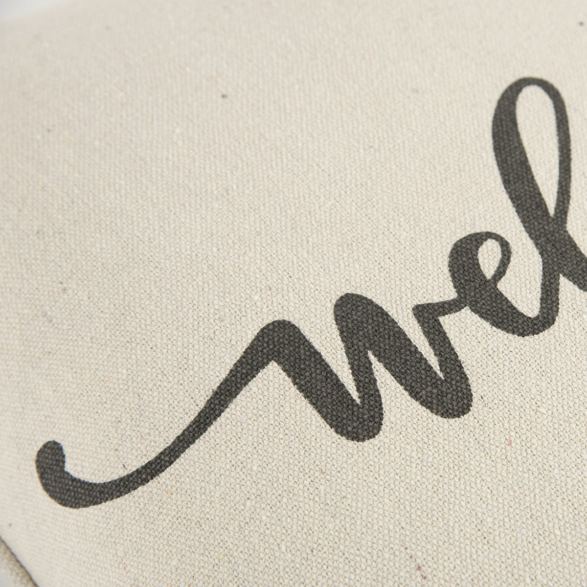 Make the guests feel invited into your living space with this Gray Cream Welcome Decorative Throw Pillow. The beautifully written cursive font flaunts the word ‘welcome’ in trout gray over a cream-toned base, giving the pillow a sophisticatedly modern look with a fun-loving attitude. Meant to work well amidst a range of interior themes and decors, the pillow is crafted from top-notch cotton canvas for long-lasting durability while the playful font adds light texture to the piece. The self-welting provides a clean and definitive outline and the solid coordinating back features a concealed zipper closure for convenience. Simple, sophisticated, and stylish in its design aesthetics, this decorative pillow will be a versatile accent piece to add class and comfort to your living room. 20” x 20” x 6.25”