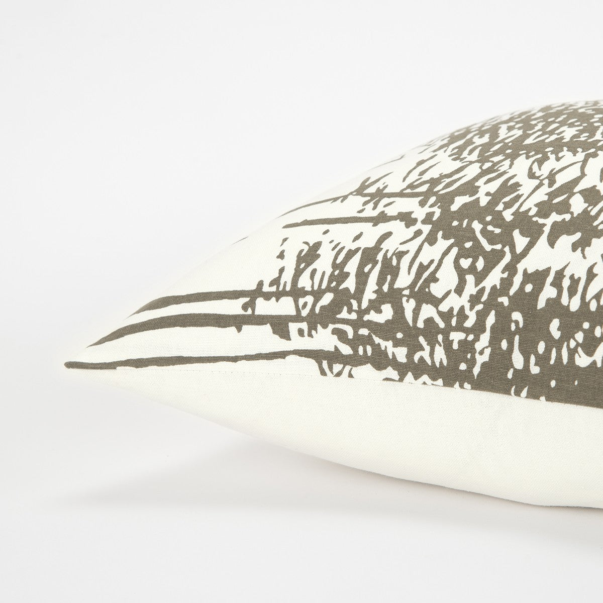 This Gray Ivory Grove of Trees Throw Pillow will instigate a feeling of being lost in the woods with a playful tone that will invite the guests to lounge longer and enjoy the moment with loved ones. The pigmented trout gray grove of trees on the ivory base creates an artistic visual appeal to fit amidst any modern or casual setting. With its premium quality cotton construction and smooth surface texture, the pillow is down-filled for an airy-soft and fluffy feel. The pillow features matching cotton back with a hidden zipper closure for easy washing, and the knife-edge corners add to a clean and polished look, making it suitable for modern interior styles. Whether you want this pillow as a stand-alone piece in the room or layer it with other colors and patterns, this decorative throw pillow will give your modern living space a simple yet stylish update. 18” x 18” x 6.25”