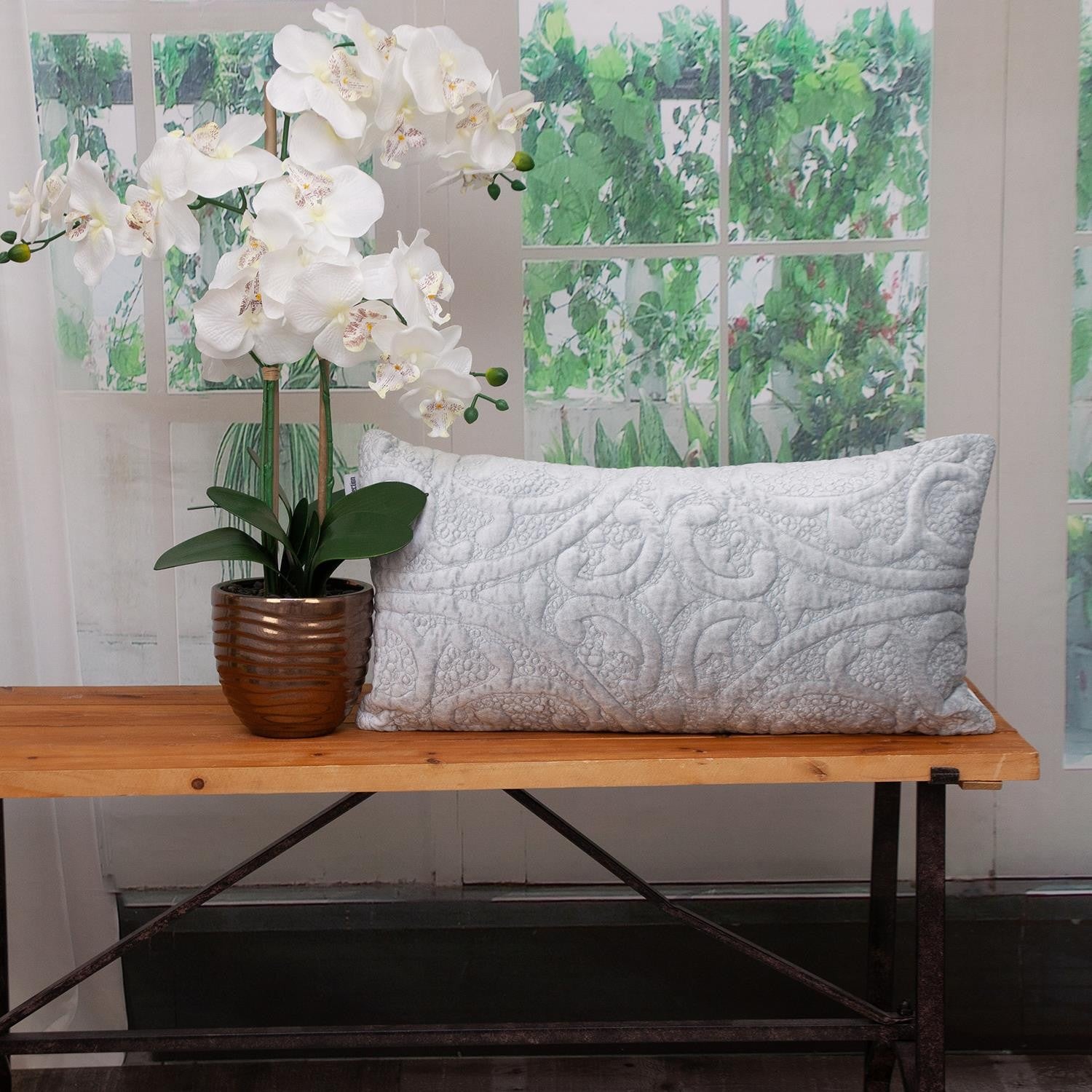 Amplify the magnificence of your décor with the Gray Quilted Velvet Lumbar Throw Pillow. Featuring an opulent geometric blend of 3D like patterns, the pillow is super soft and portrays a grandeur classic presence. Interweaved to perfection the cotton and velvet fused pillow has an original perspective and can highlight, add a touch of luxury to any room. A hidden zipper flap is provided for easy cleaning and maintenance. Bring some character and a splash of color into your home with the lumbar throw pillow that is generously sized to make your sofa, chair or bedroom more pleasant and cozy. 12" x 24" x 4"