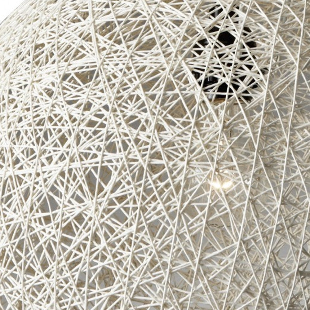 Perfect for a cozy styled living space, this large ceiling mount pendant light is an easy overhead lighting solution. Cream colored rattan strings form a sphere encasing a 60 Watt incandescent bulb or equivalent CFL. With a 15 black fabric covered cord, equipped with an on/off rocker switch, you can easily hang this pendant wherever it is needed and plug it in without the trouble of hardwiring.