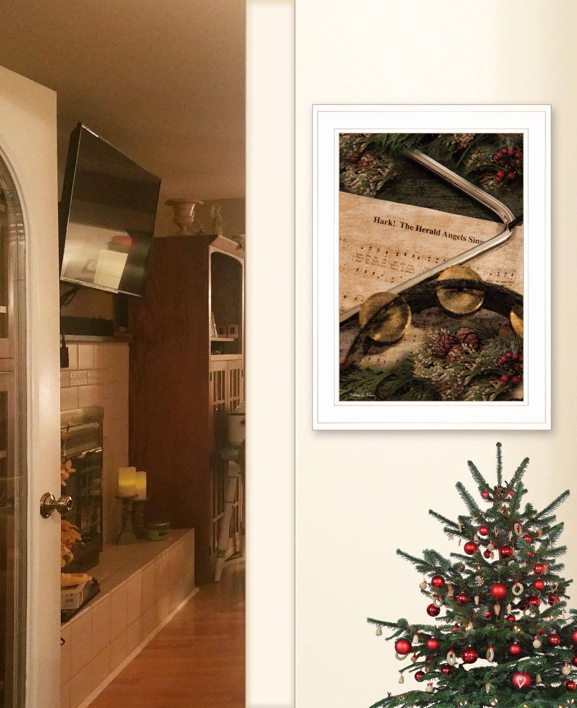 This hark the herald angels sing white framed print wall art is the perfect way to celebrate and decorate for the Christmas Season. This print is a visual artistic expression that allows you to decorate your space in style. Reproduced for you on paper, this hanging decorative accent will be a trendy and fashionable way to dress your walls. Adding this hanging wall art to your space to make your room feel more finished and attractive. Instantly liven up your space with this art that brings color and dimension to your walls. 21 inches H x 15 inches W x 1 inches D