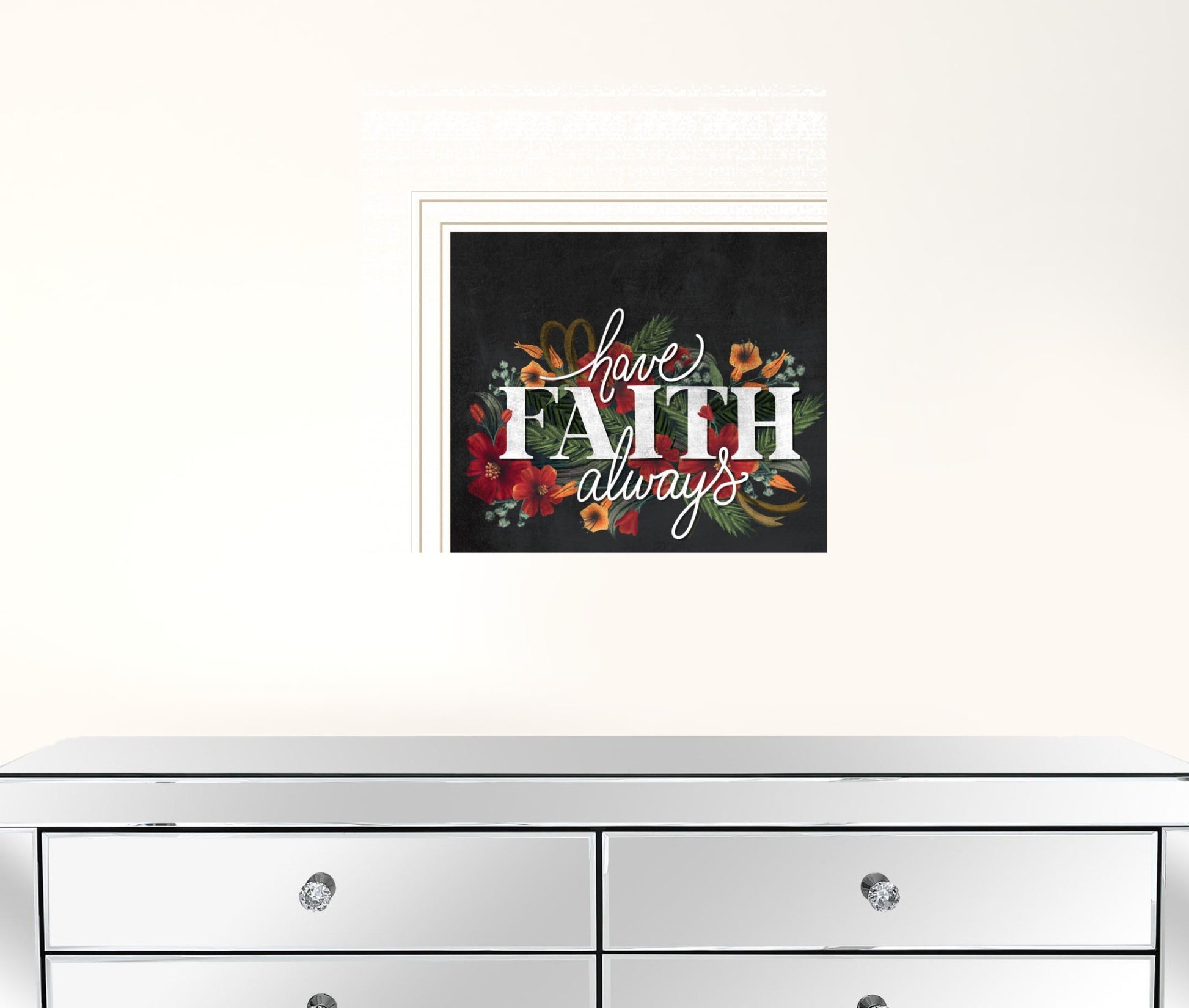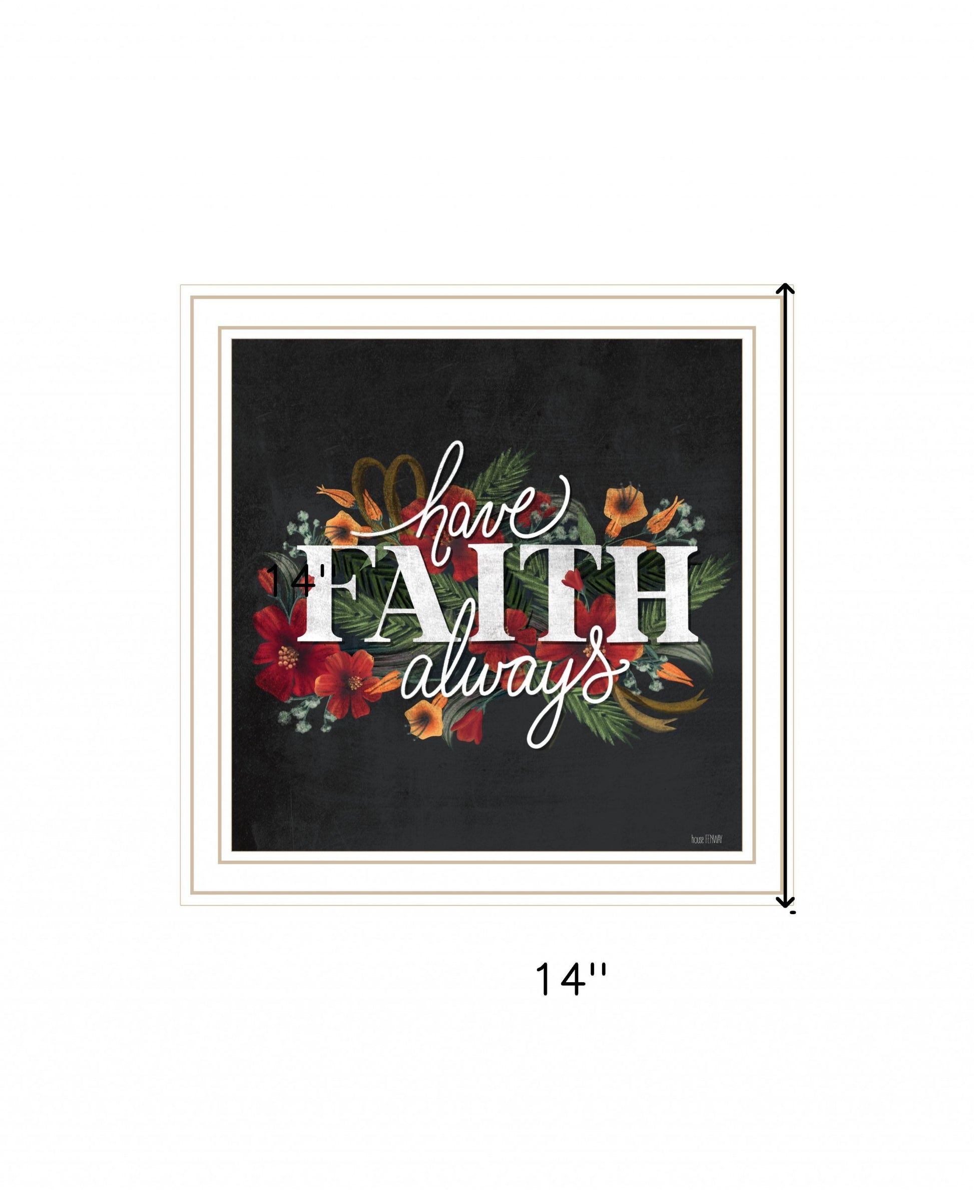 Bring some sizzle to your space with this eye-catching have faith always white framed print wall art. This print is a visual artistic expression that allows you to decorate your space in style. Reproduced for you on wood, this hanging decorative accent will be a trendy and fashionable way to dress your walls in a rustic and modern farmhouse vibe. Adding this hanging wall art to your space to make your room feel more finished and attractive. Instantly liven up your space with this art that brings color and dimension to your walls. 14 inches H x 14 inches W x 1 inches D