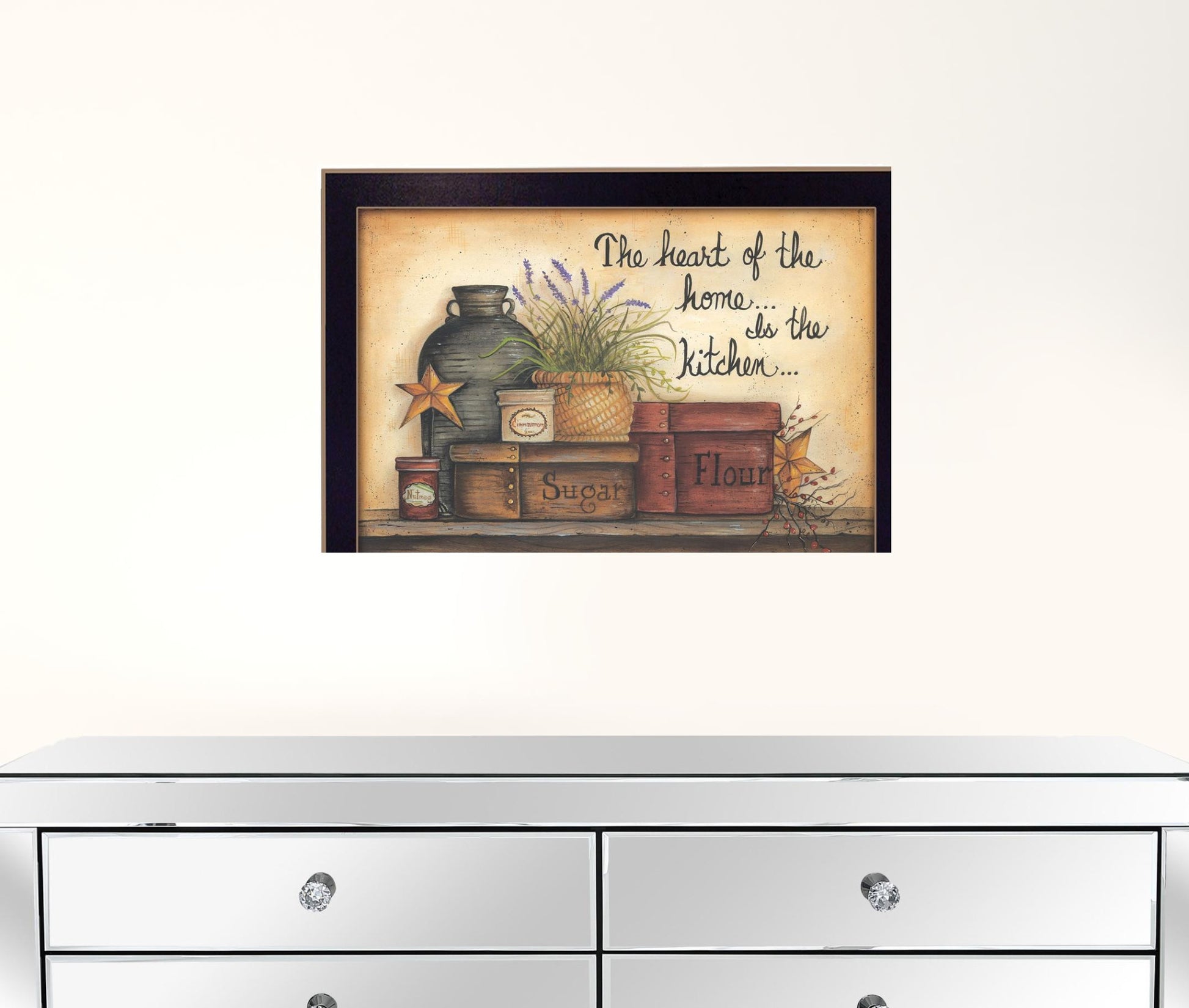 This heart of the home 4 black framed print kitchen wall art will add a beautiful decorative accent to your decor. This print is a visual artistic expression that allows you to decorate your space in style. Reproduced for you on paper, this hanging decorative accent will be a trendy and fashionable way to dress your walls. Hang on your wall to add some up to date fashion and decoration. Utilize this opportunity to create a focal point in the room with this fabulous wall decor option. 14 inches H x 18 inches W x 1 inches D