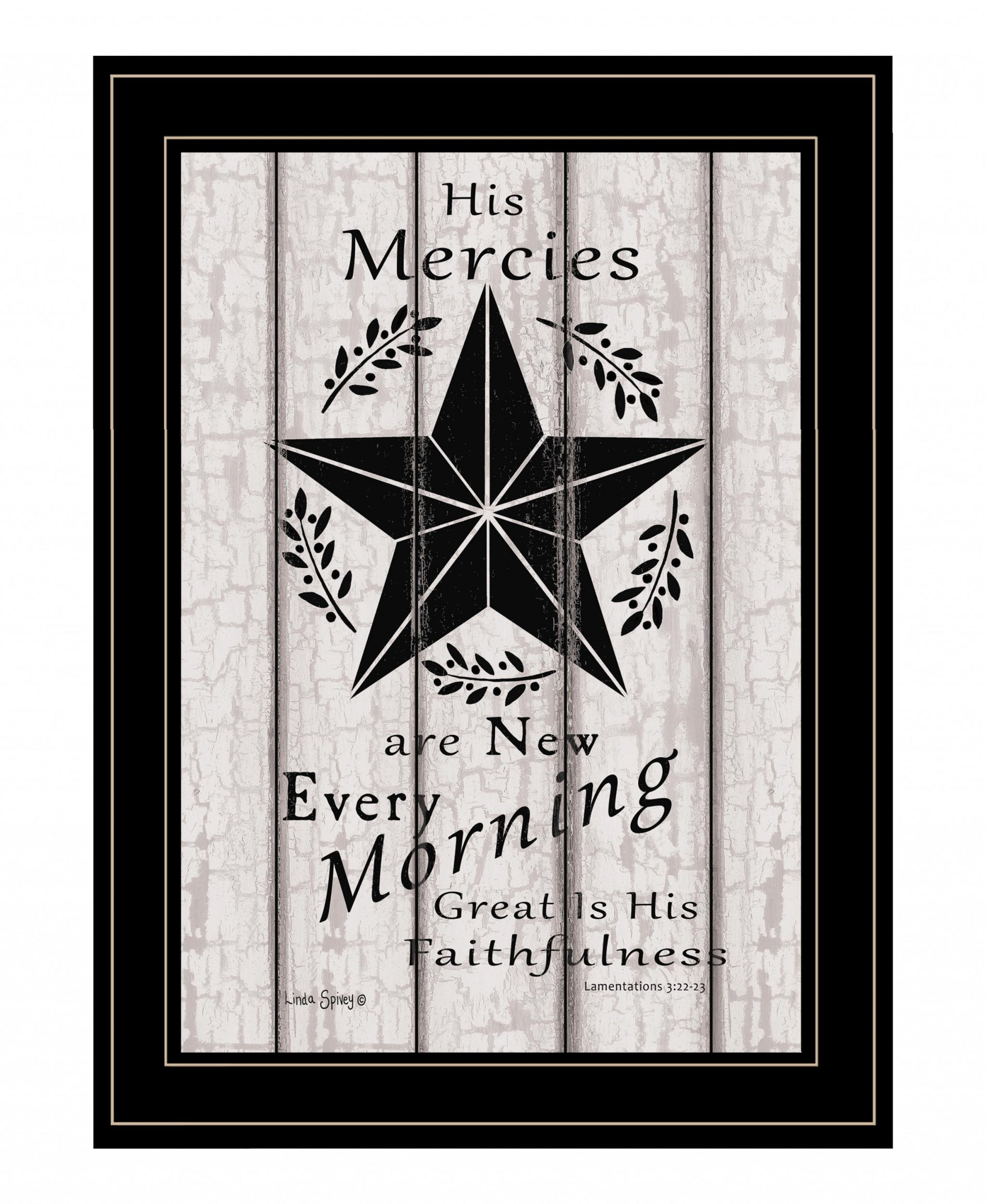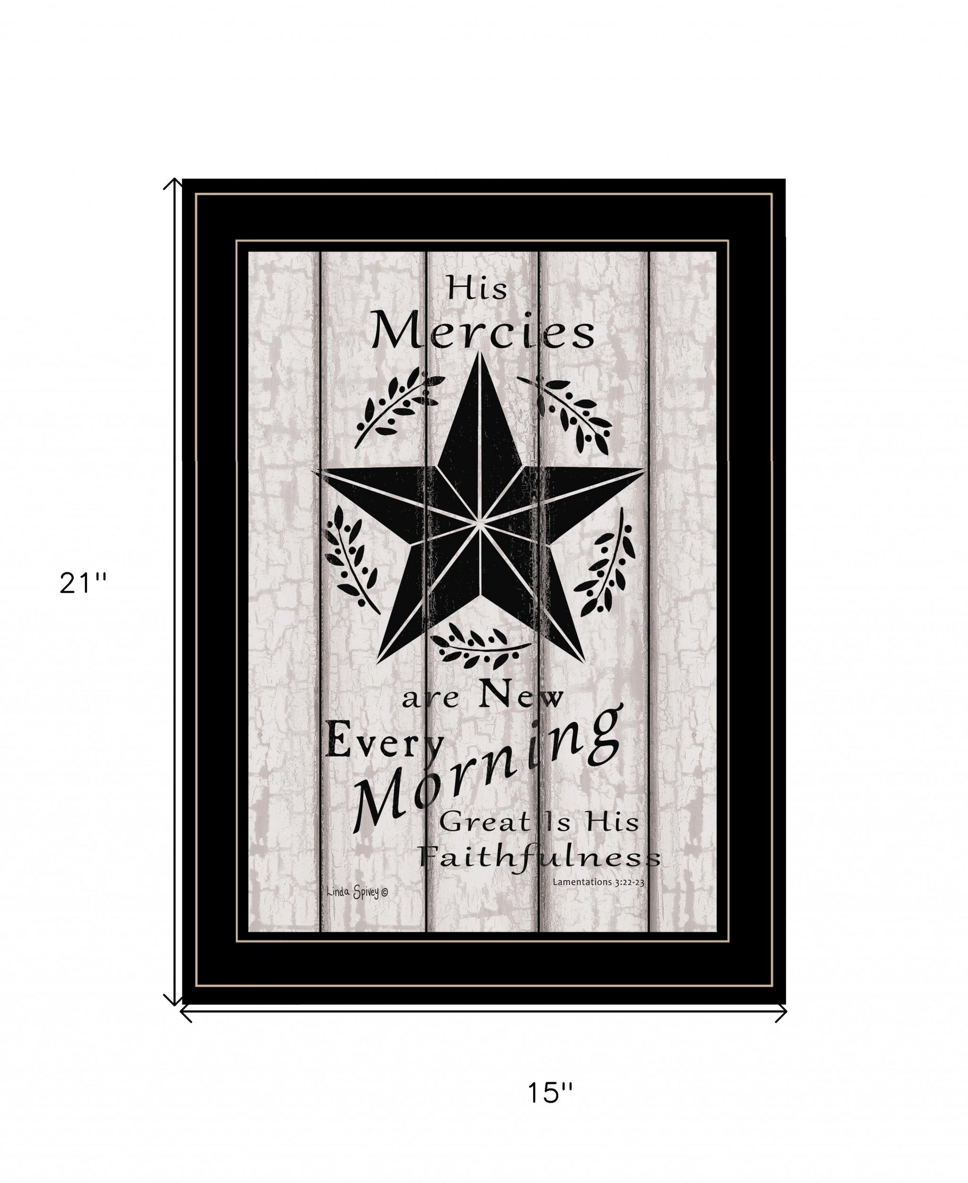This his mercies are new every morning 3 black framed print wall art is a great way to celebrate and decorate for the holidays. This print is a visual artistic expression that allows you to decorate your space in style. Reproduced for you on wood, this hanging decorative accent will be a trendy and fashionable way to dress your walls in a rustic and modern farmhouse vibe. Hang on your wall to add some up to date fashion and decoration. Instantly liven up your space with this art that brings color and dimension to your walls. 21 inches H x 15 inches W x 1 inches D