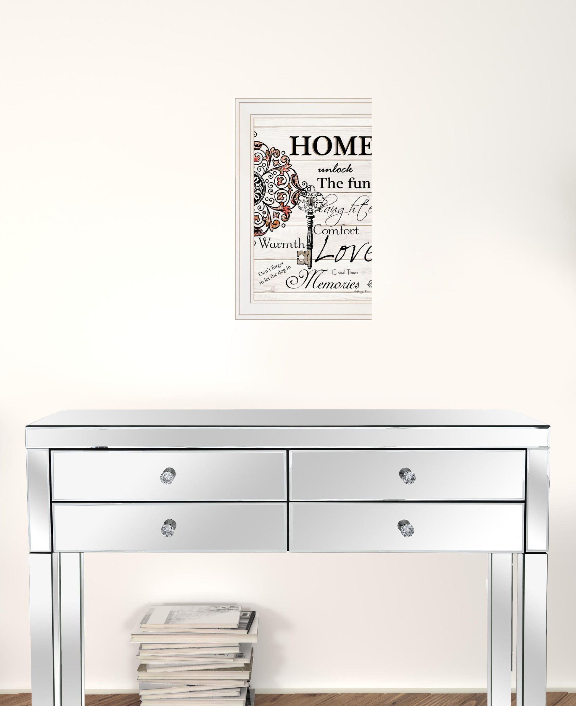 The home or laughter 1 white framed print wall art is the perfect decorative accessory for your home. This print is a visual artistic expression that allows you to decorate your space in style. Reproduced for you on paper, this hanging decorative accent will be a trendy and fashionable way to dress your walls. Hang on your wall to add some up to date fashion and decoration. Utilize this opportunity to create a focal point in the room with this fabulous wall decor option. 19 inches H x 15 inches W x 1 inches D
